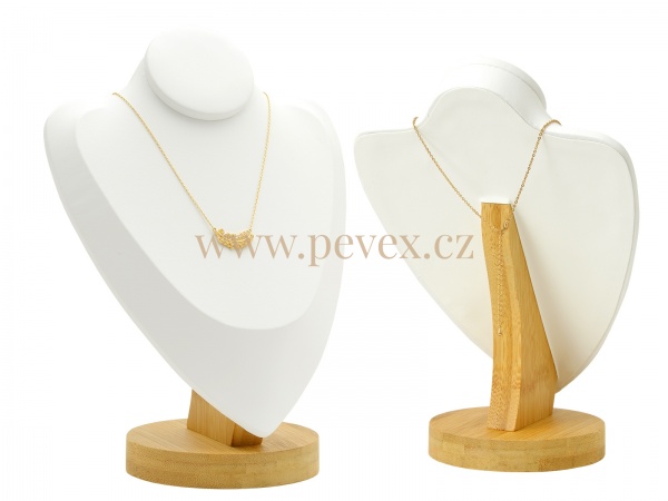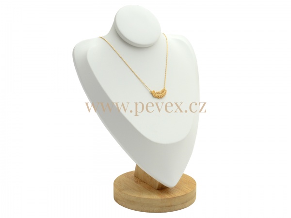 Dřevěná busta potažená koženkou na řetízek, řetízek s přívěskem, náhrdelník, korále - výška 230 mm