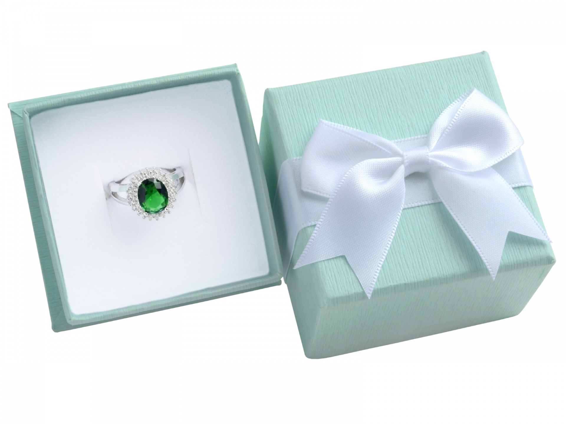 Papírové krabičky s mašlí, molitanová vložka s průseky na šperky.