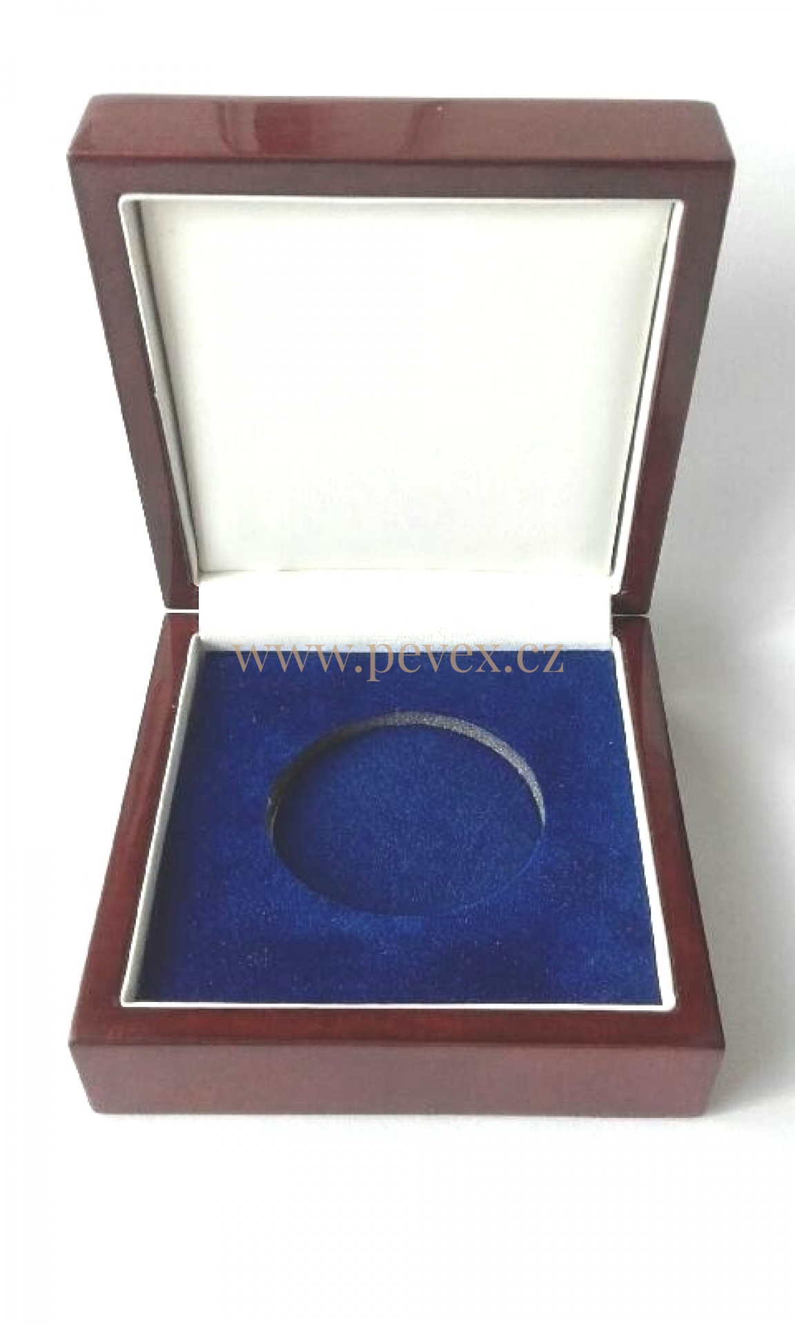 Krabička dřevěná lakovaná s vložkou na minci. Při objednávce uvádějte průměr a tloušťku mince, pro kteru Vám zhotovíme vložku. Dále barvu vložky ( modrá, červená, černá).