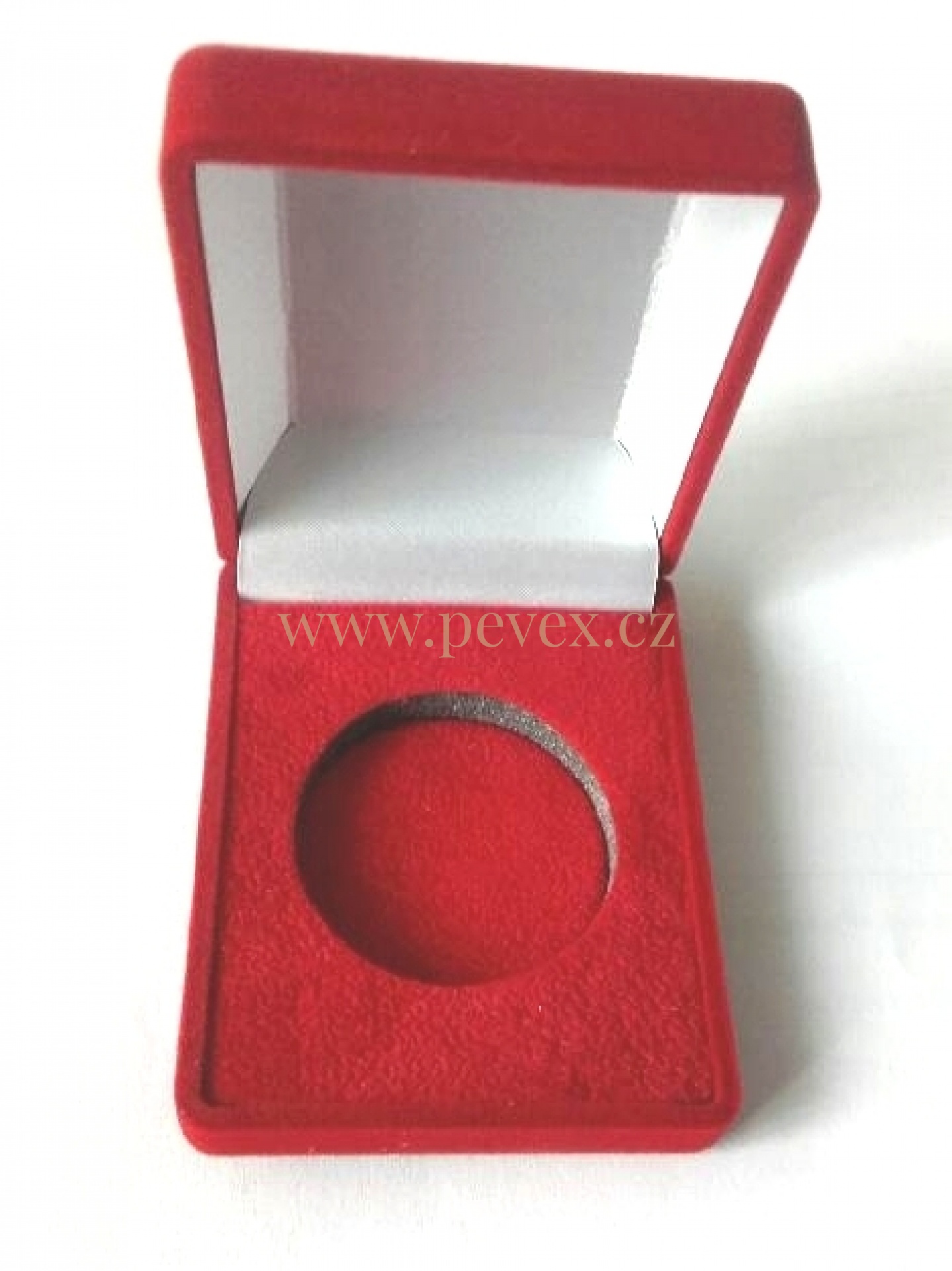 Sametová krabička na mince, rozměr 60 x 75 x 25 mm, vložka s průsekem na minci