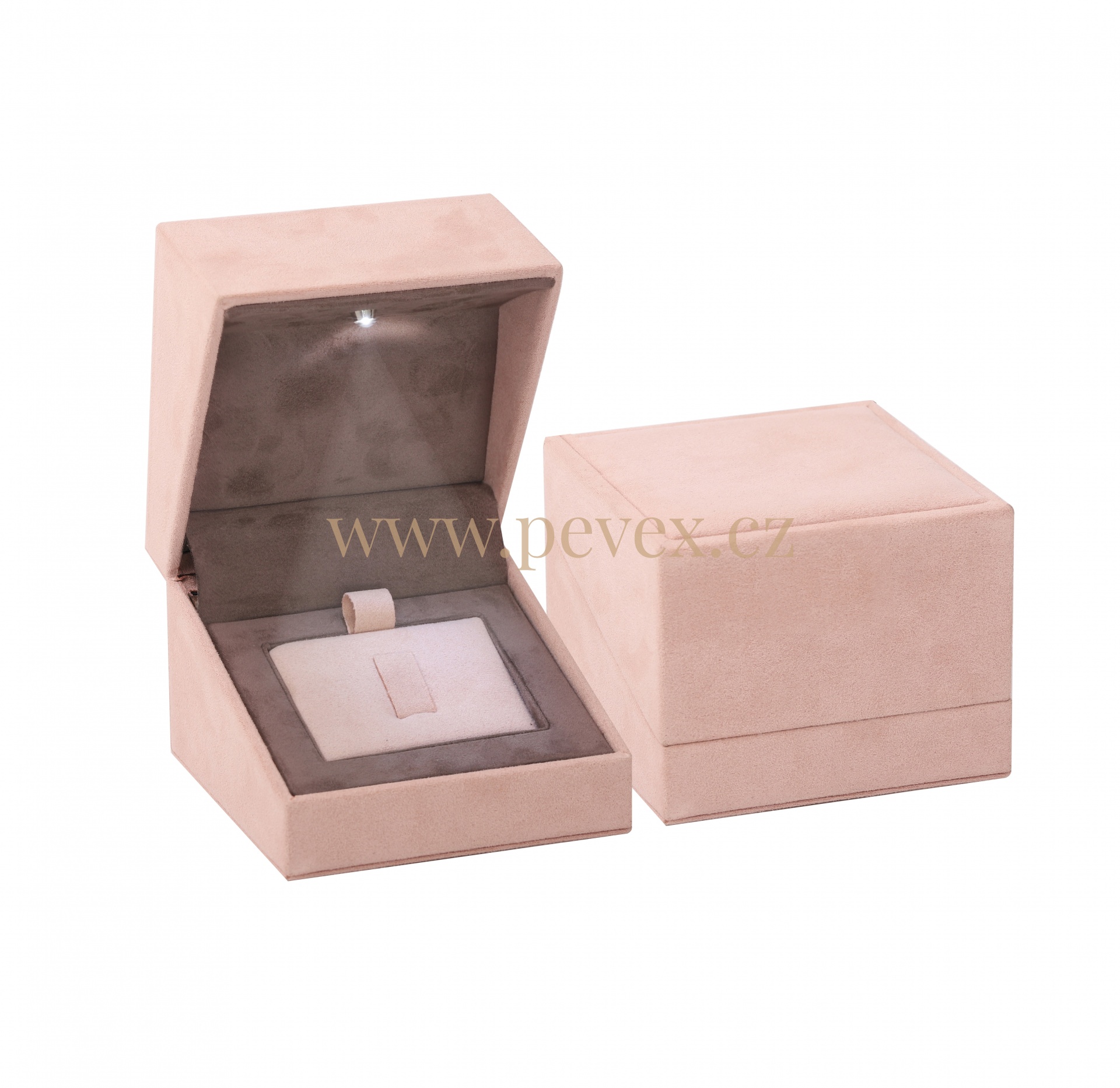 Luxusní krabička na prsten potažená koženkou s LED nasvícením.