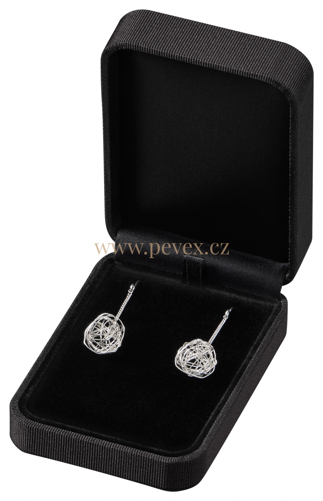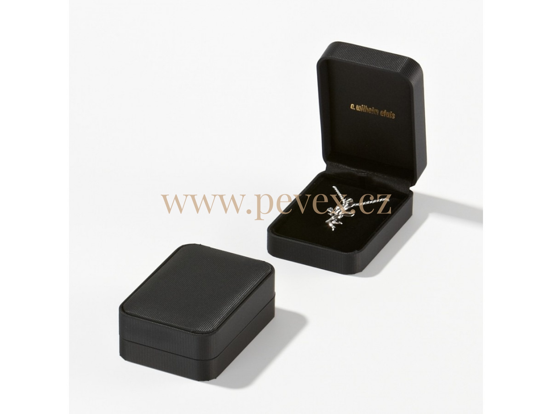 Krabička potažená strukturovaným textilním potahem, samtová vložka pro řetízek.