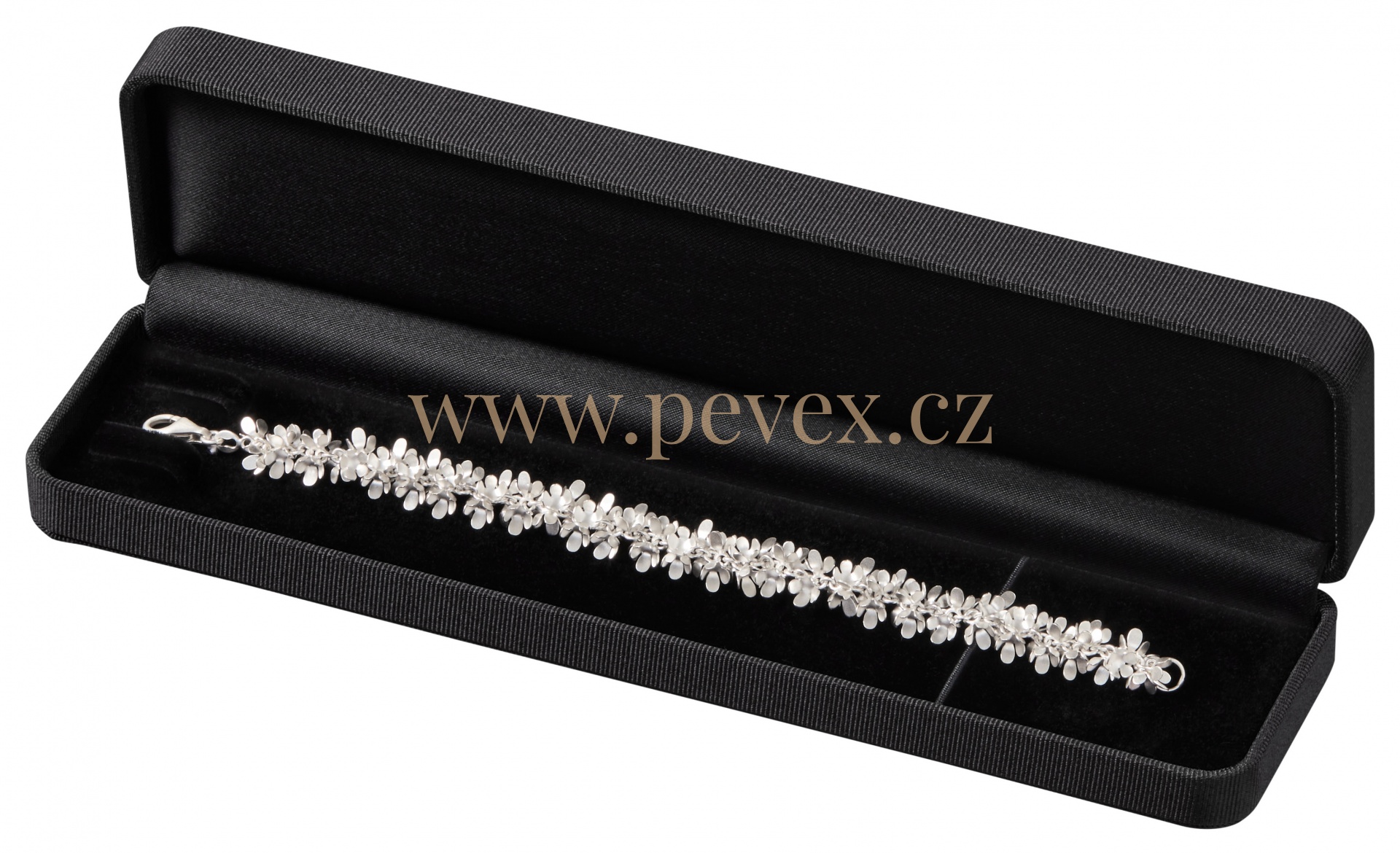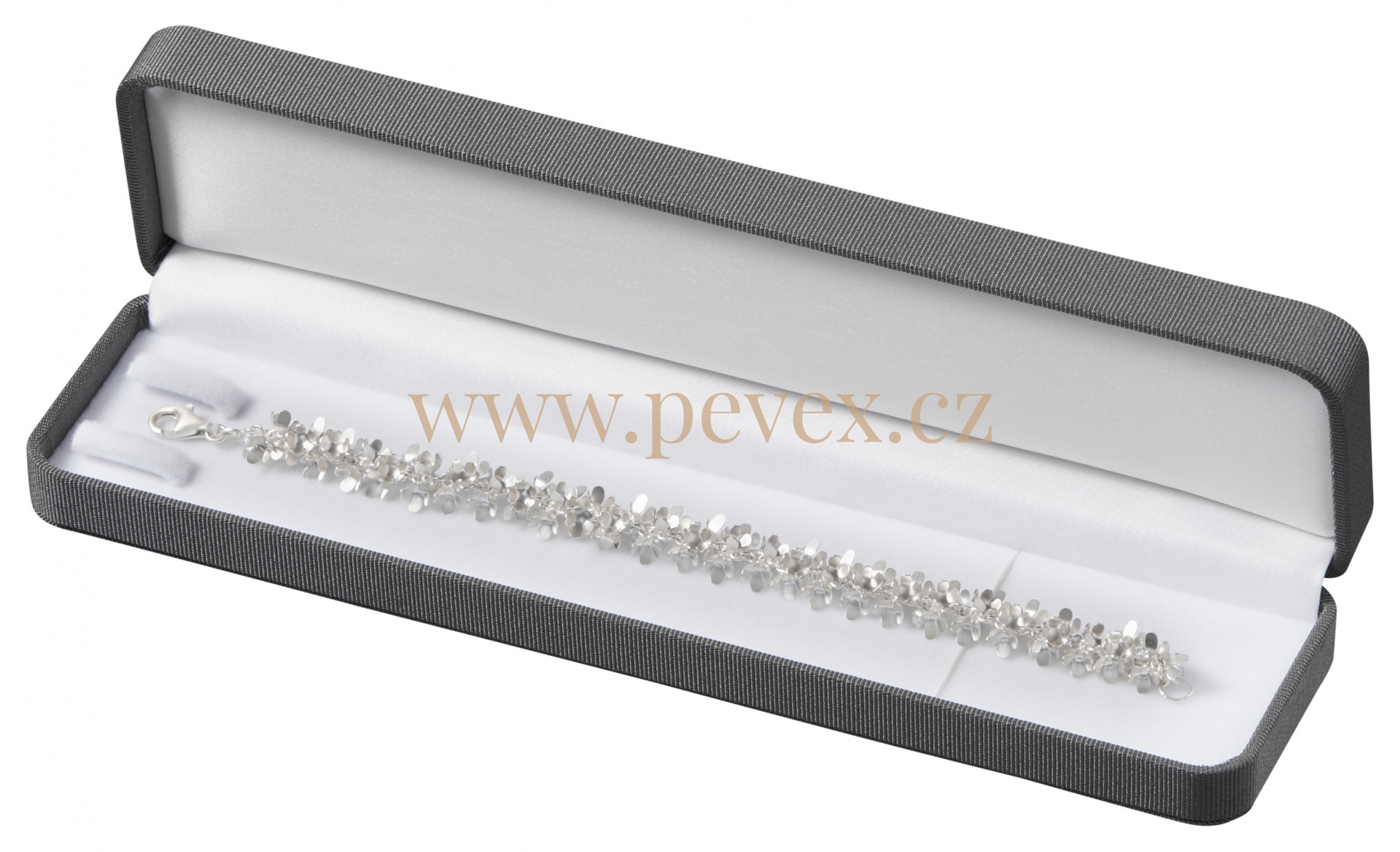 Luxusní krabička na náramek potažená strukturovanou textilií. Papírová krabička v barvě krabičky jako přebalka.