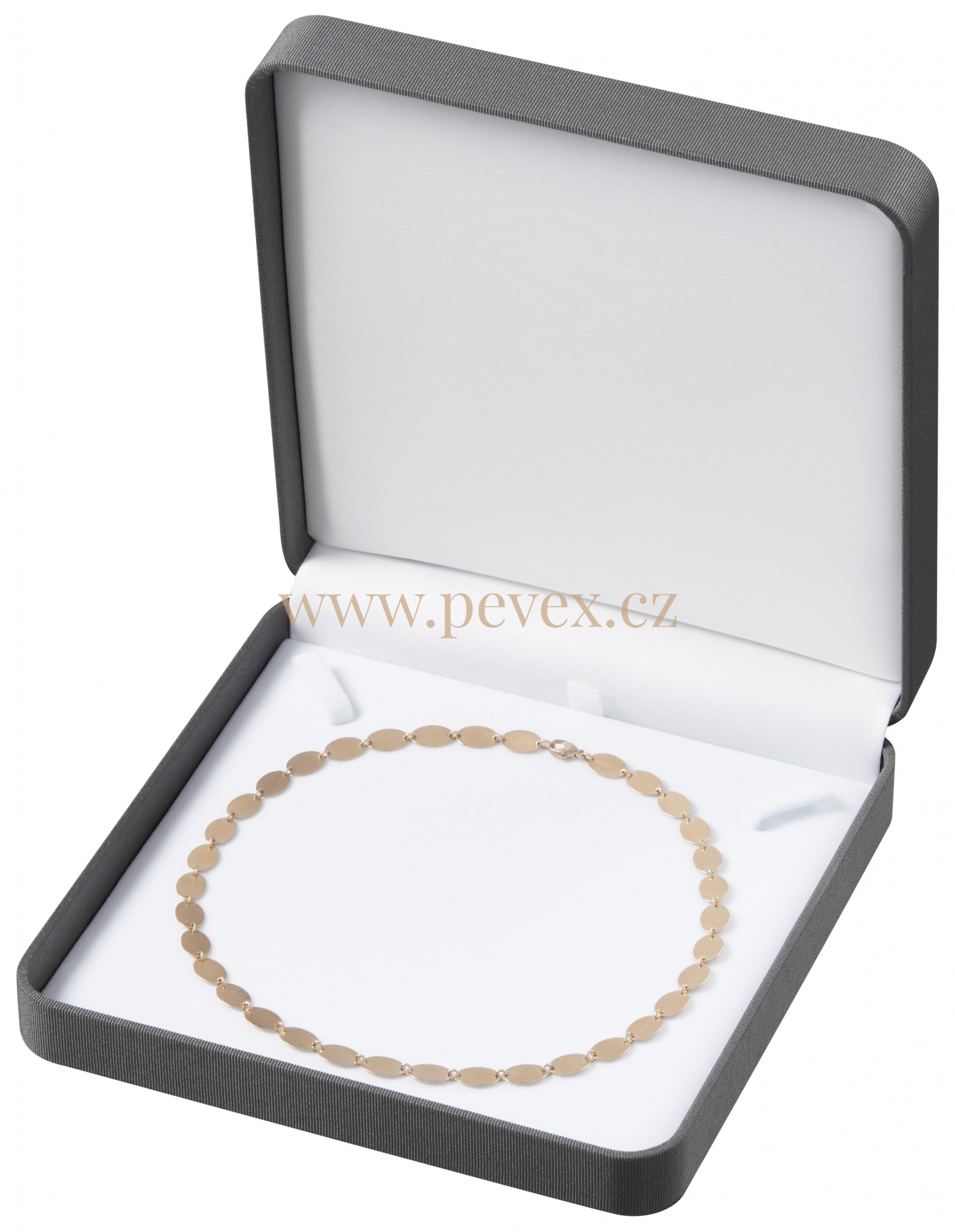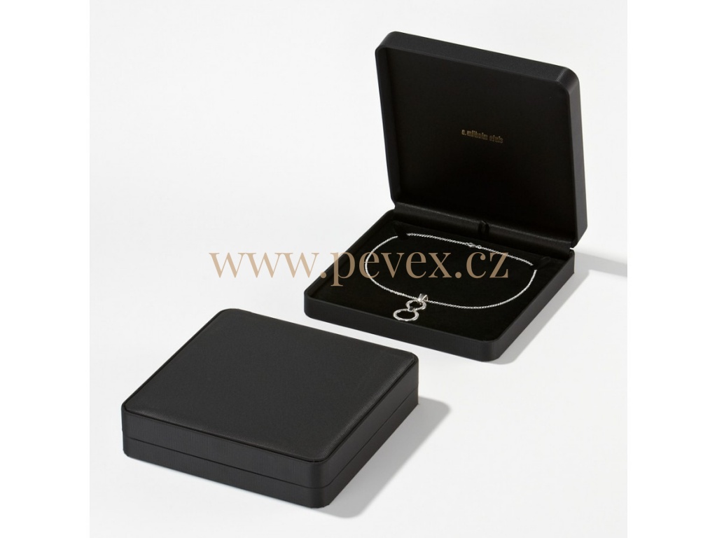 Luxusní krabička potažená strukturovaným textilním potahem, sametová vložka pro náhrdelník.