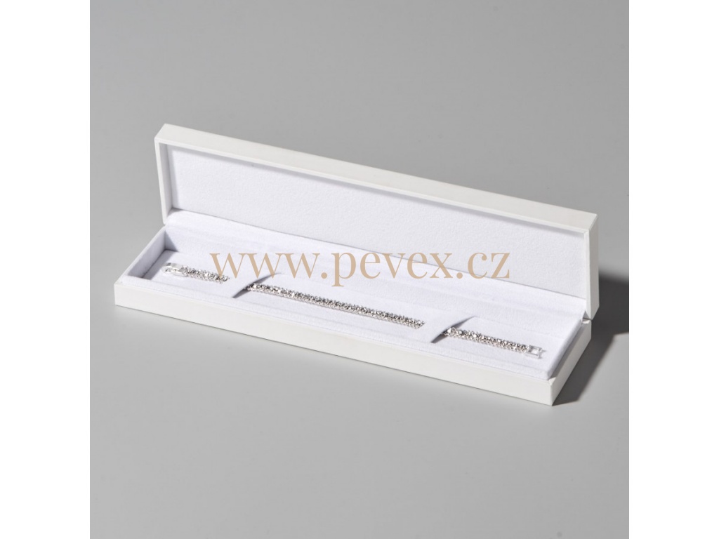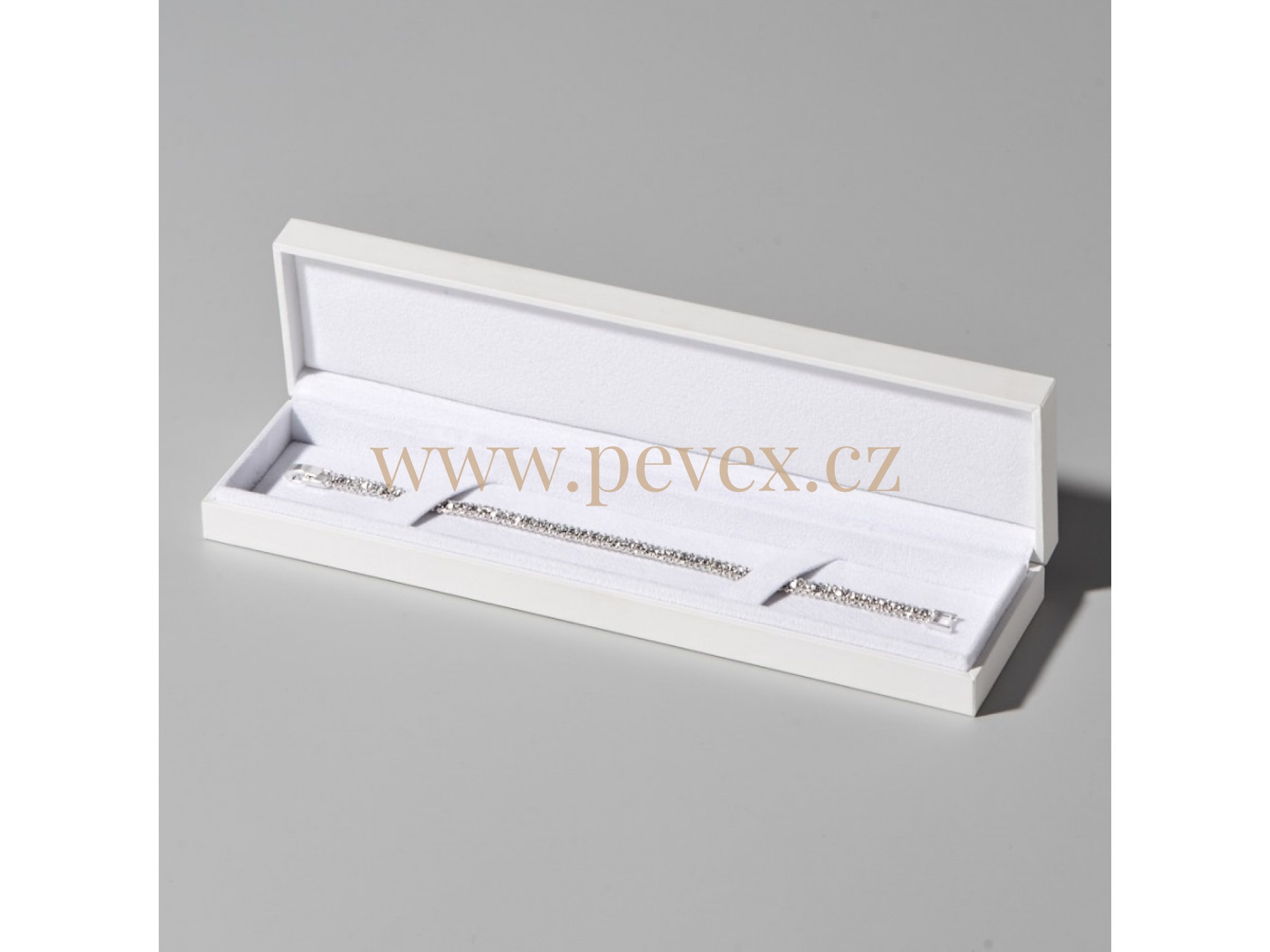 Luxusní krabička s pérovým pantem a sametovou vložkou pro uložení náramku.