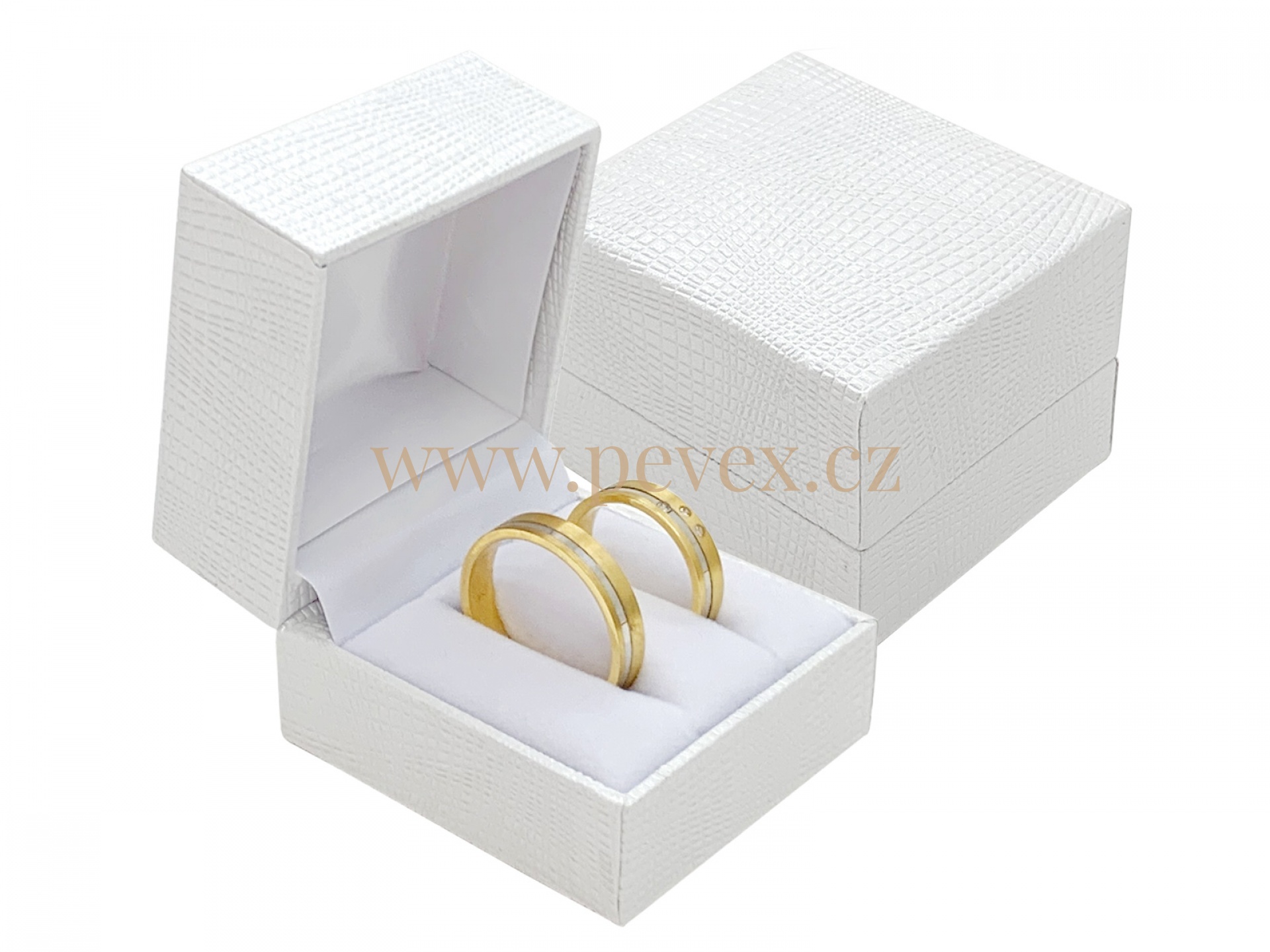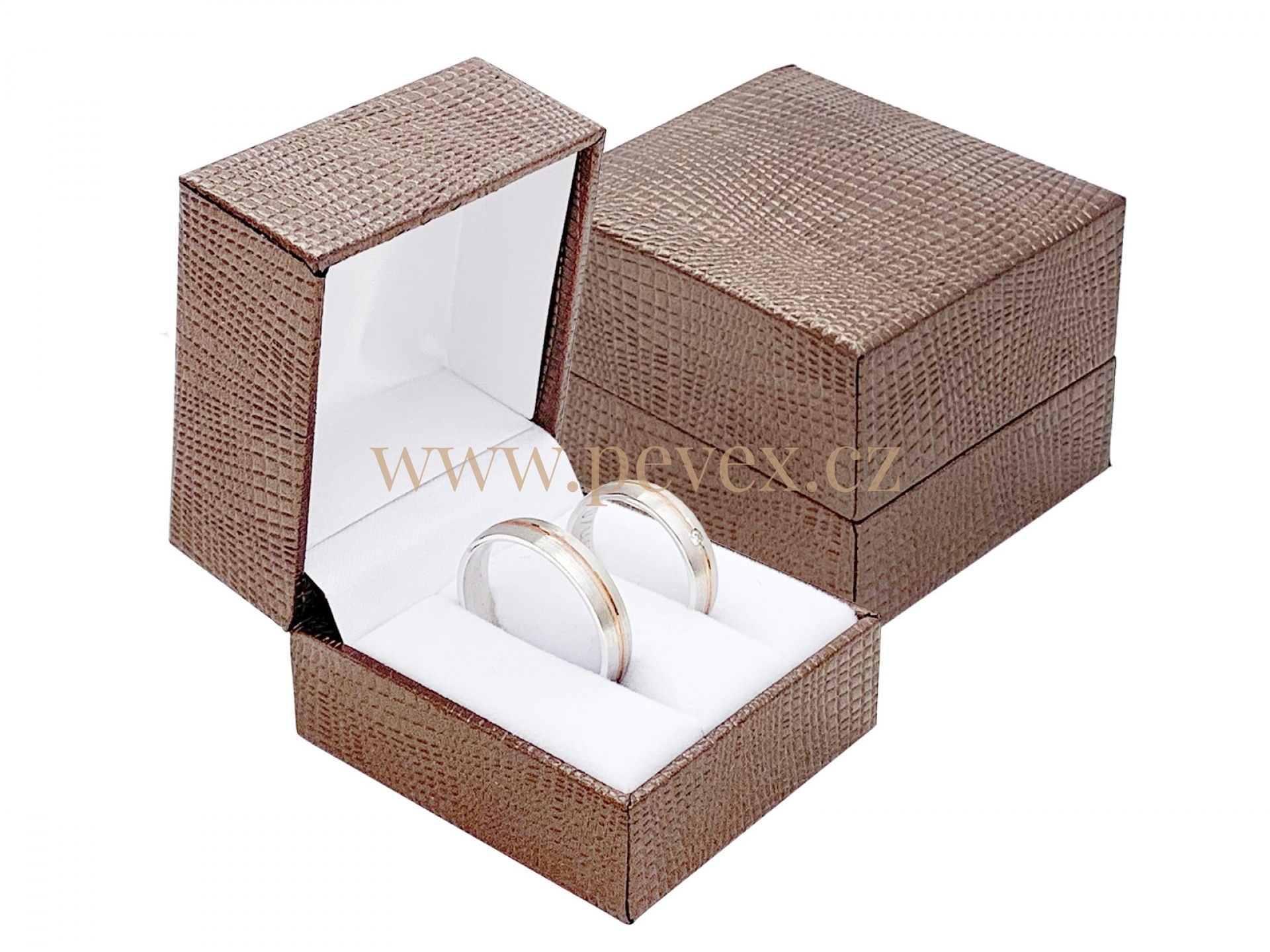 Luxusní krabička potažená strukturovanou koženkou pro náušnice. Pérový pant a sametová vložka.