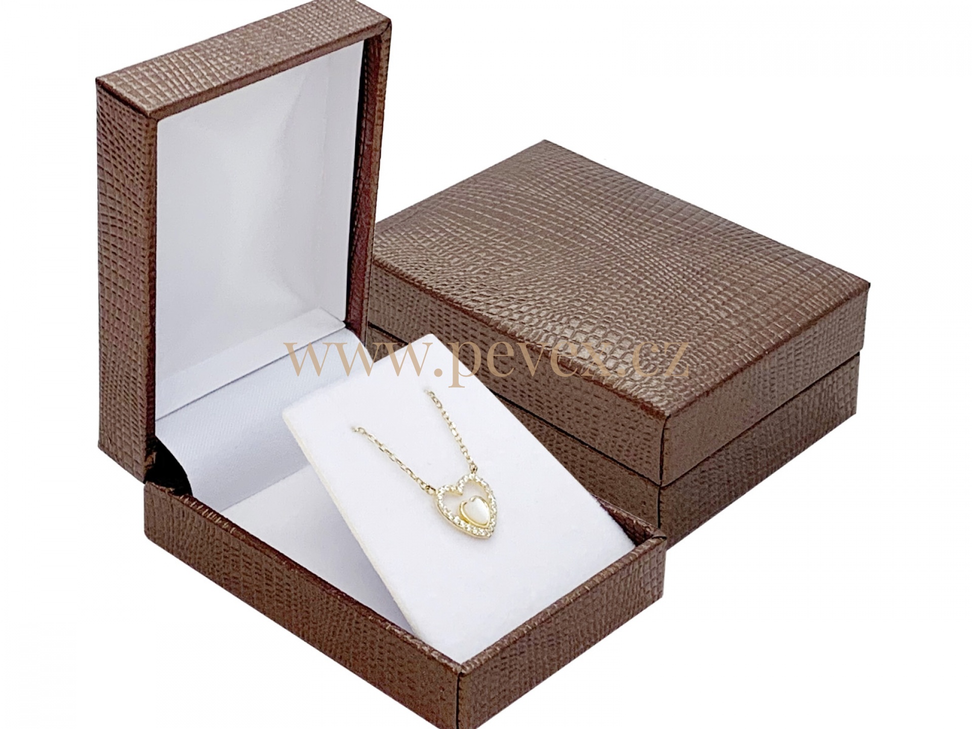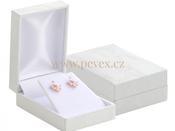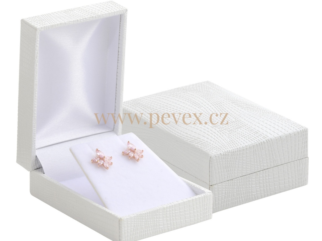 Luxusní krabička potažená koženkou pro vložení náušnic. Sametová vložka se sklopkou.