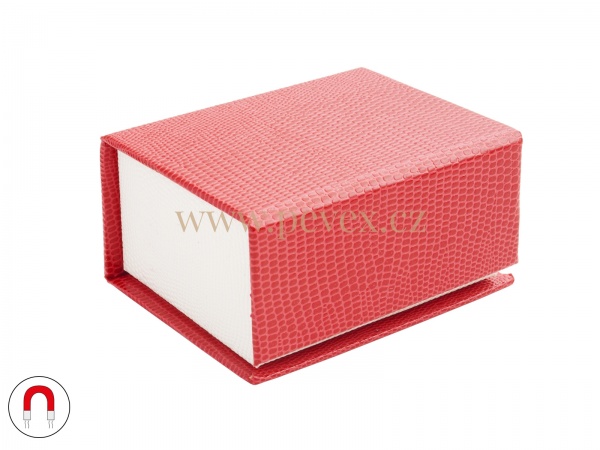 Krabičky potažené plastikovou fólií se zavíráním na magnet. Oboustanná molitanová vložka ( bílá/černá ), překryvná sametová textilie. Kombinace dvou barev.