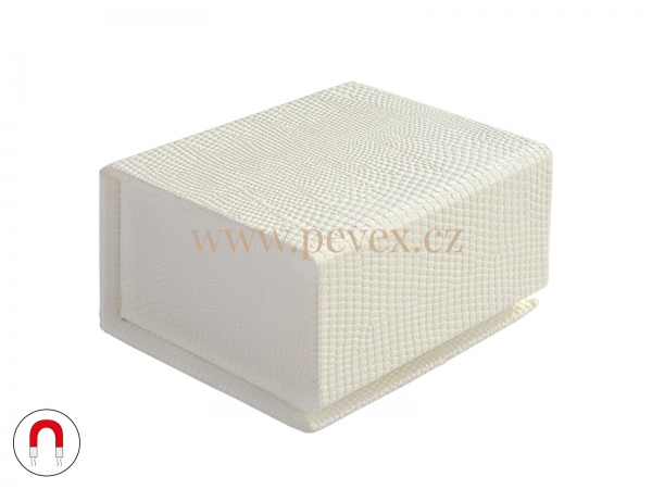 Krabičky potažené plastikovou fólií se zavíráním na magnet. Oboustanná molitanová vložka ( bílá/černá ), překryvná sametová textilie. Kombinace dvou barev.