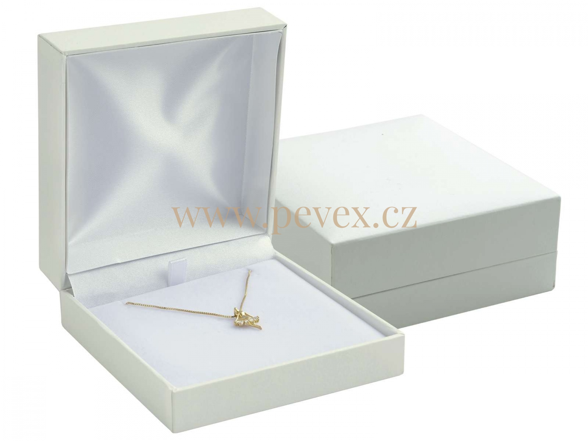 Luxusní krabička potažená imitací koženky a vložkou pro řetízek.