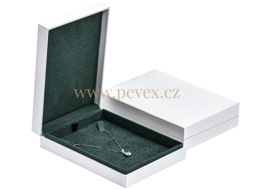 Luxusní krabička potažená imittací koženky se samtovou vložkou pro náhrdelník.