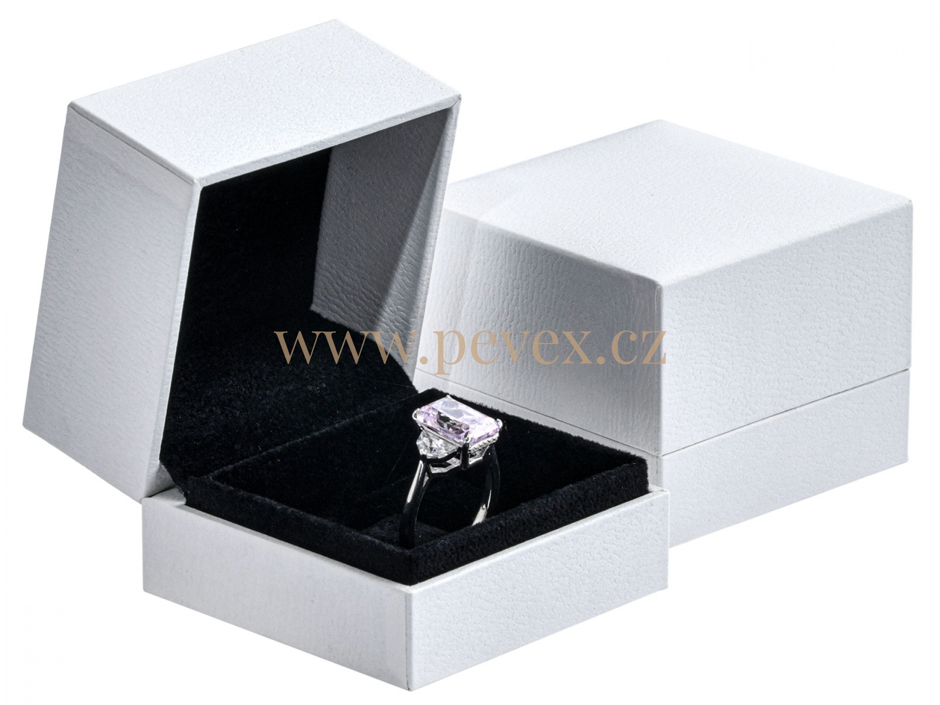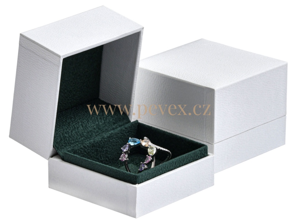 Luxusní krabička potažená imitací koženky se sametovou vložkou pro prsten.