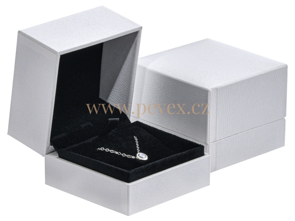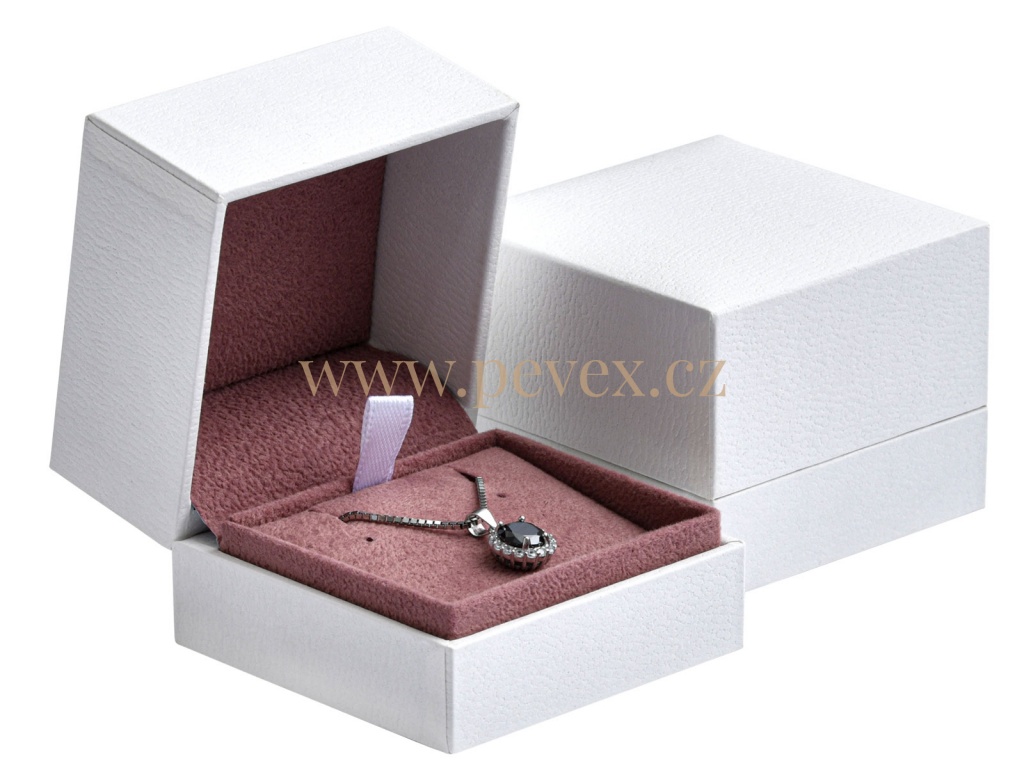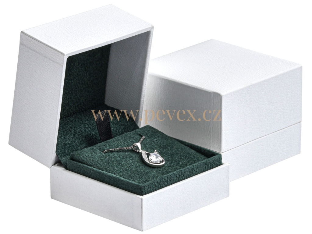 Luxusní krabička potažená imitací koženky se sametovou vložkou pro řetízek.