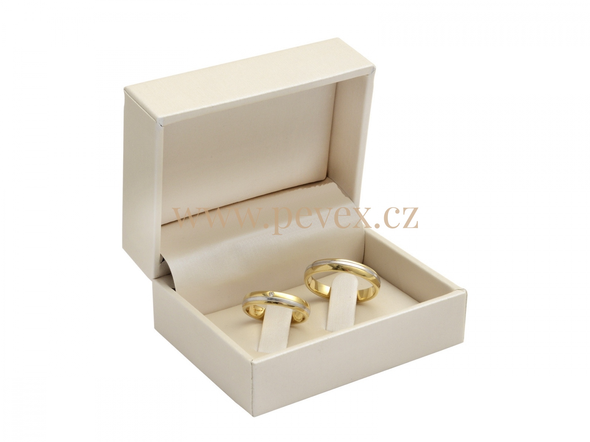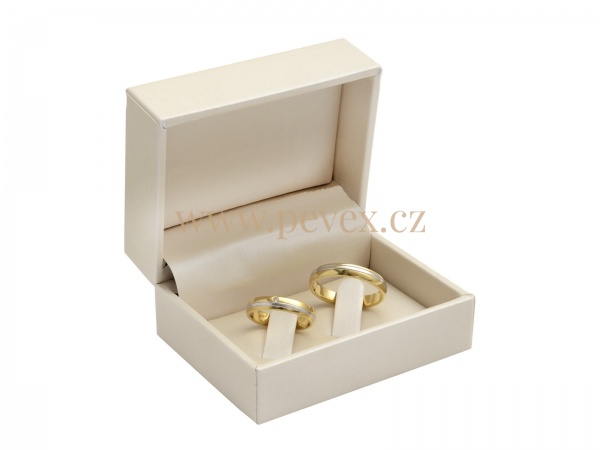 Luxusní krabička potažená koženkou s vložkou pro snubní prsteny.