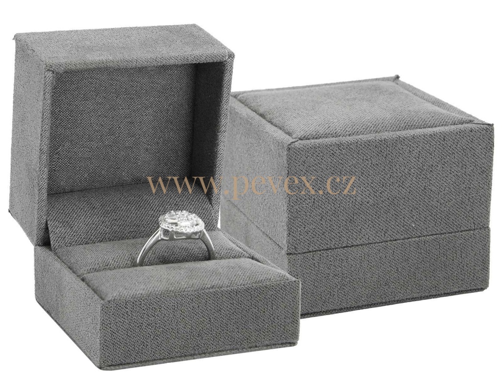 Krabička potažená textilním potahem s vložkou pro prstem.
