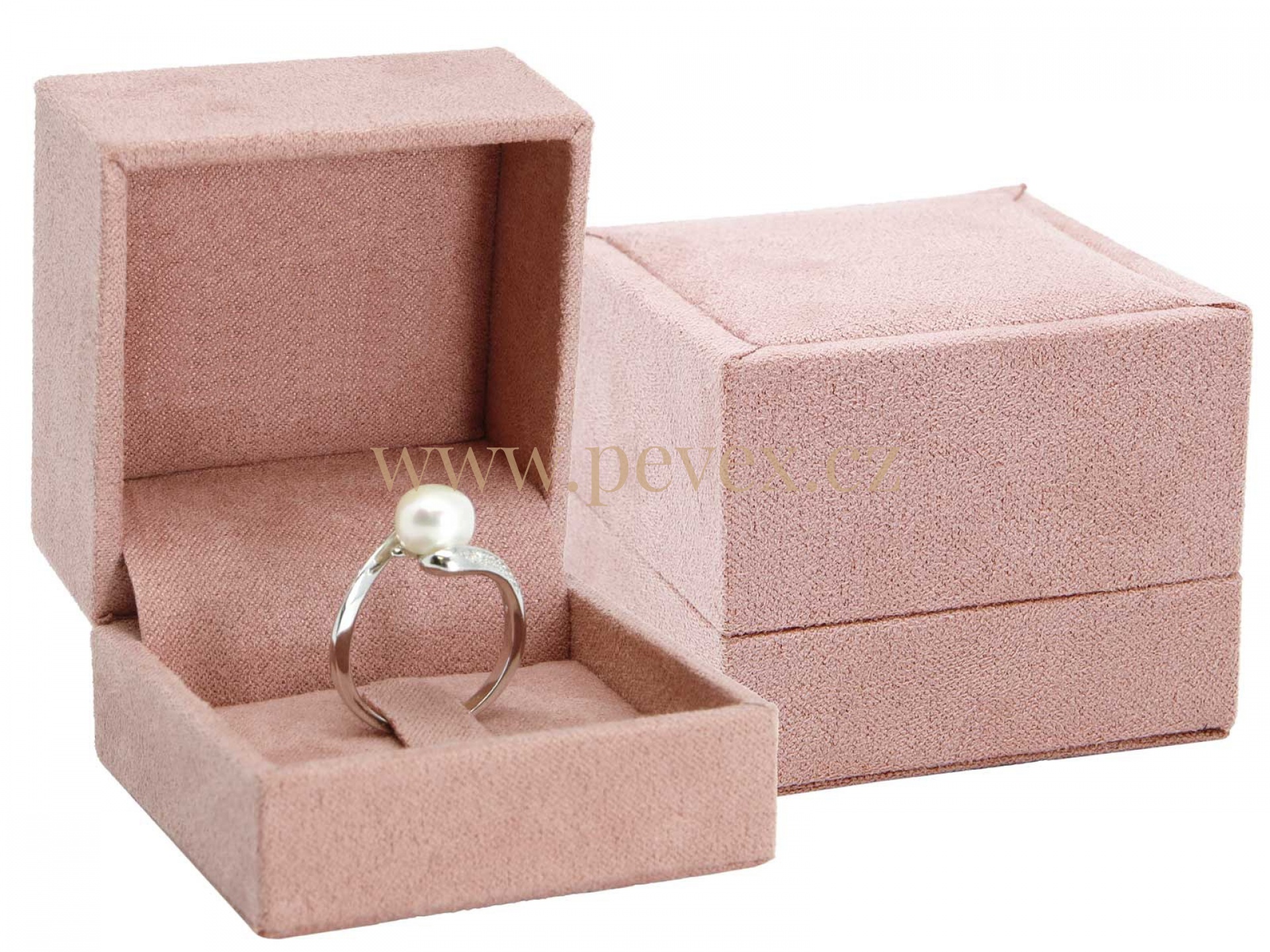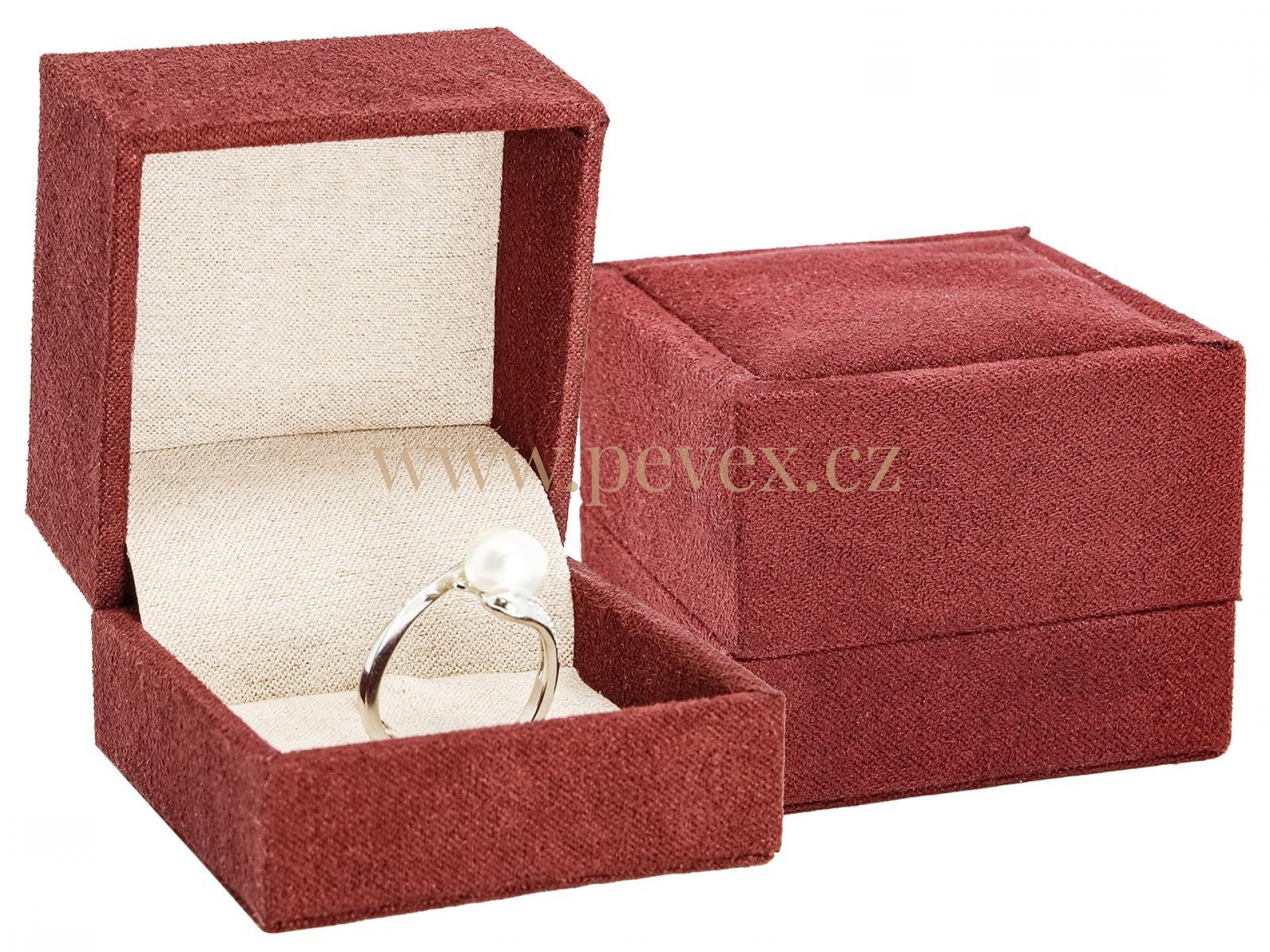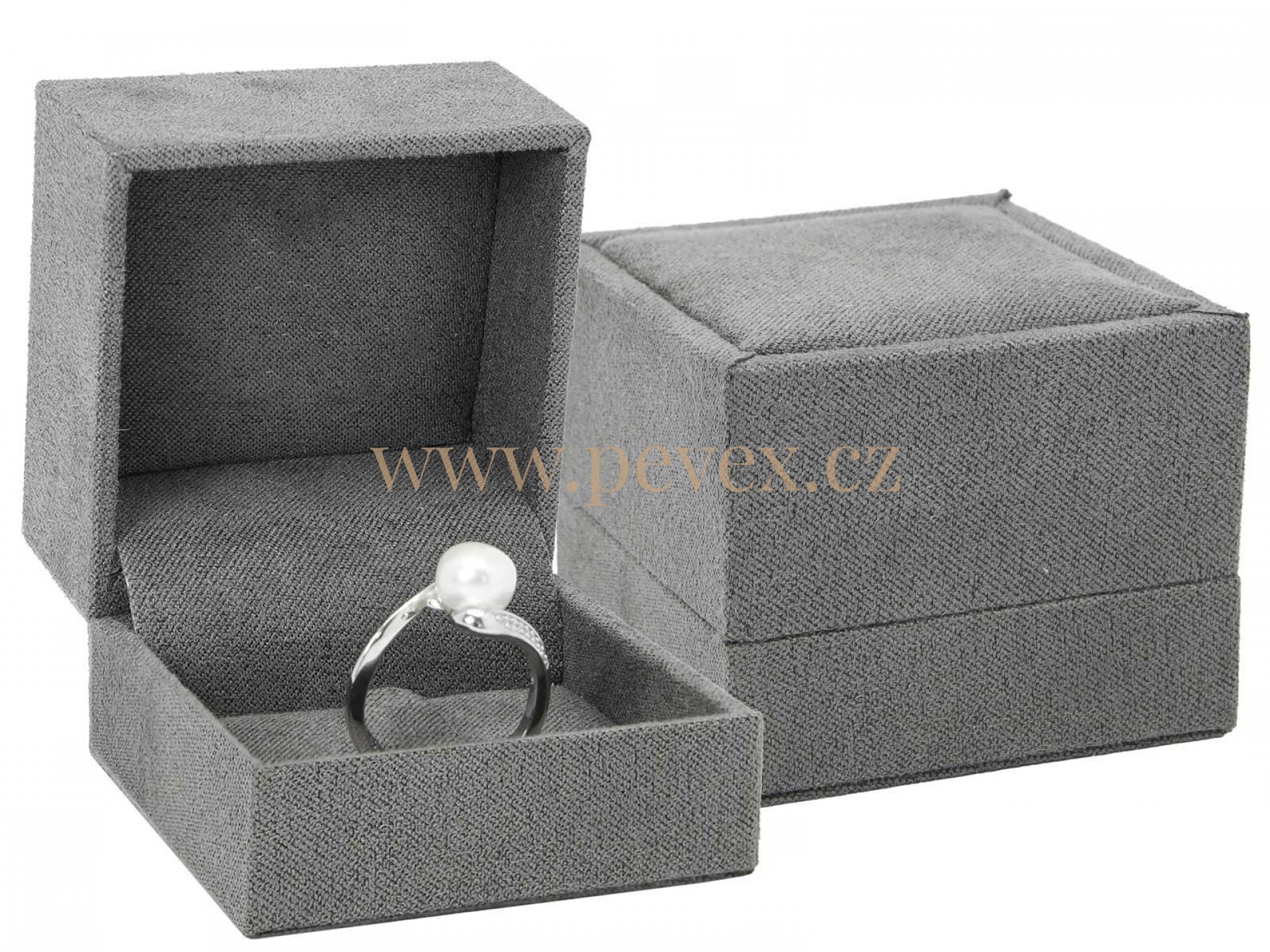 Luxusní krabička potažená textilním potahem s vložkou na prsten.