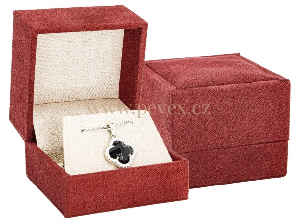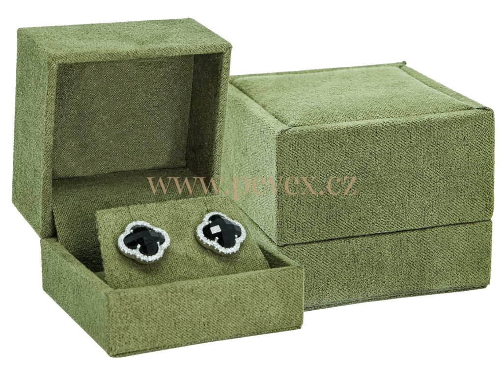 Luxusní krabička potažená textilem s vložkou pro náušnice nebo řetízek.