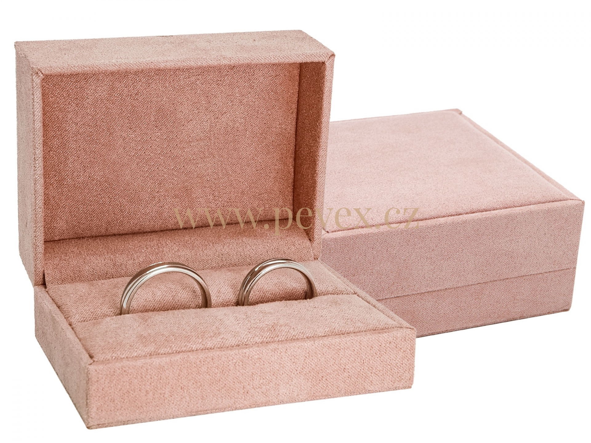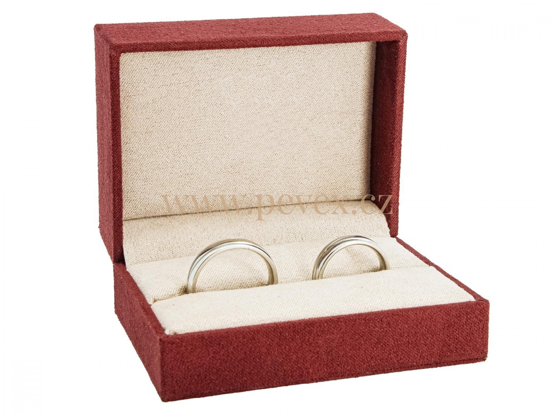 Luxusní textilní krabička s vložkou pro snubní prsteny.