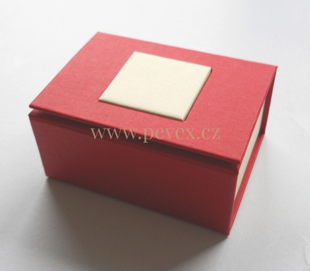 Papírová krabička pro snubní prsteny nebo manžetové knoflíčky. Molitanová vložka s průseky. Zavírání na vyseklý čtverec. Krabička vhodná na snubní prsteny nebo manžetové knoflíčky.