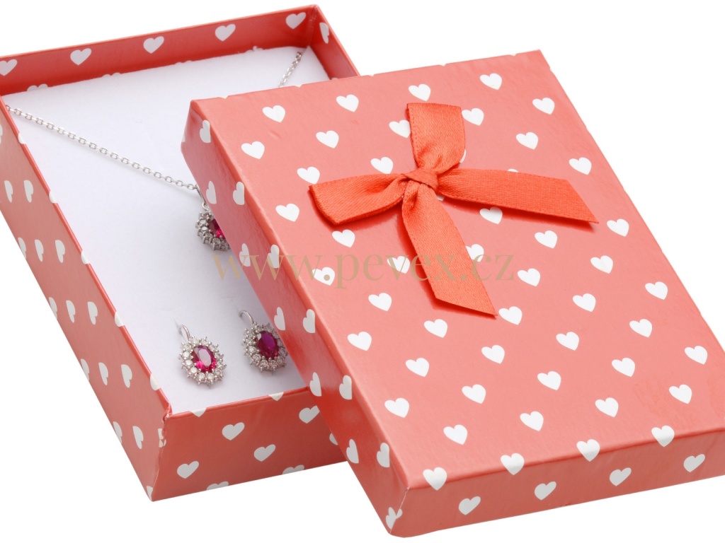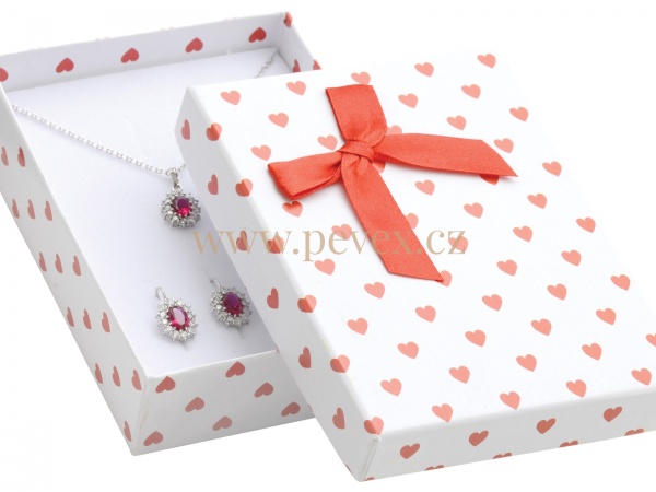 Papírová krabička s mašlí a molitanovou vložkou pro větší sadu šperků.