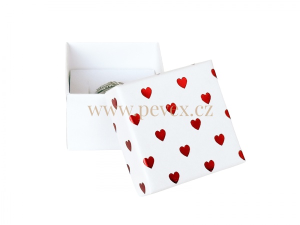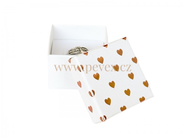 Papírová krabička s potiskem srdíček. Molitanová vložka pro prsten nebo náušnice.
