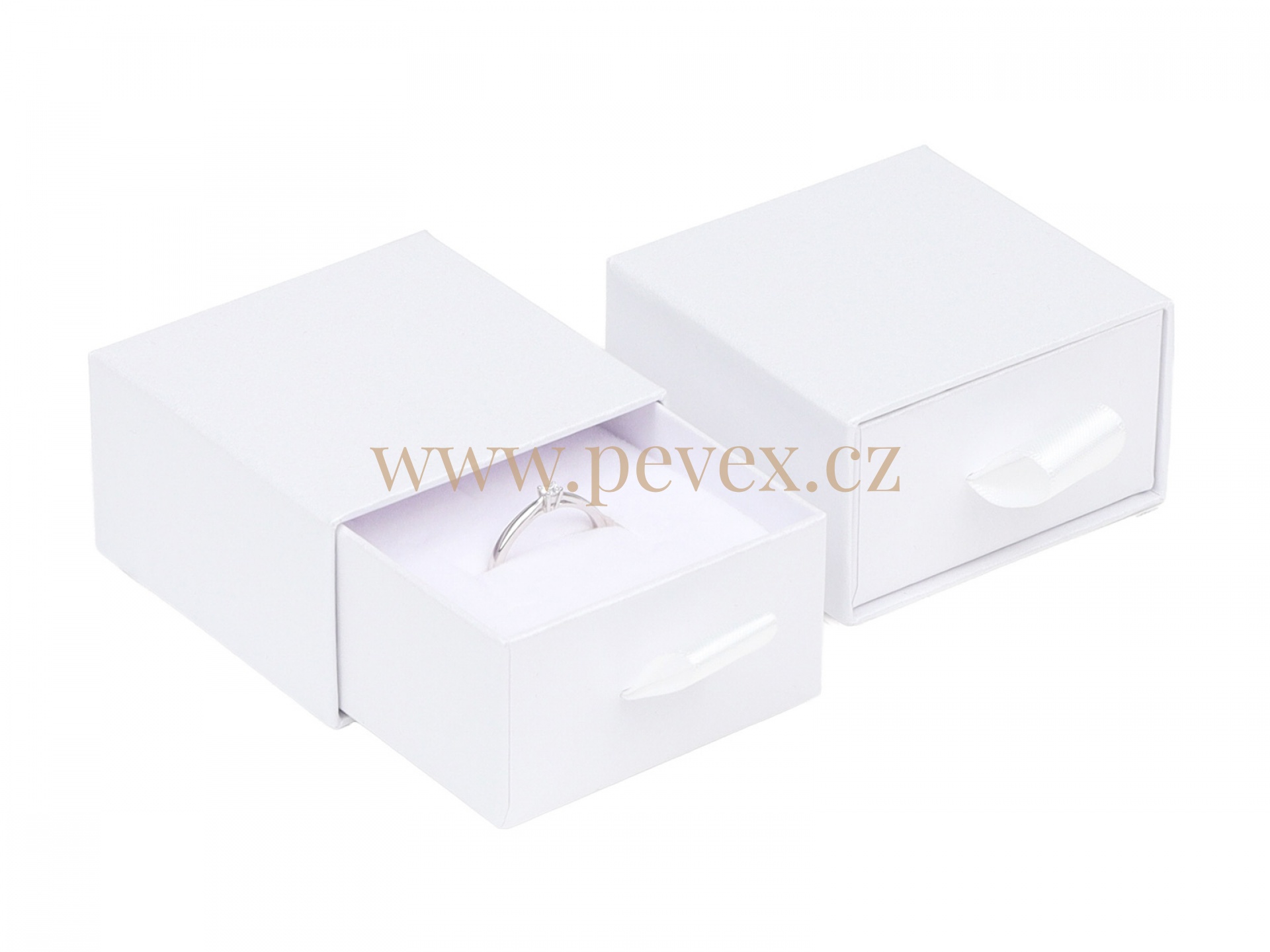 Papírová krabička pro menší soupravu šperků s oboustrannou molitanovou vložkou ( bílá/černá ). Šuplíkové provedení.
