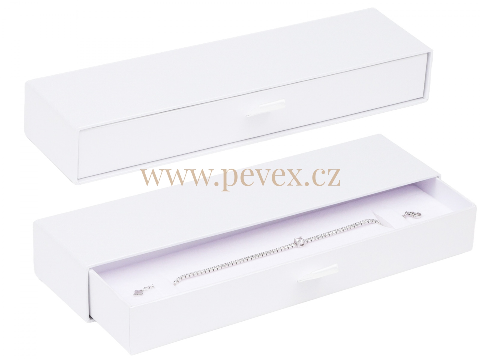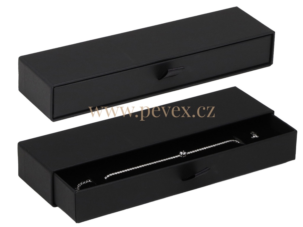 Výsuvná krabička pro uložení náramku s oboustrannou molitanovou vložkou ( bílá/černá ).