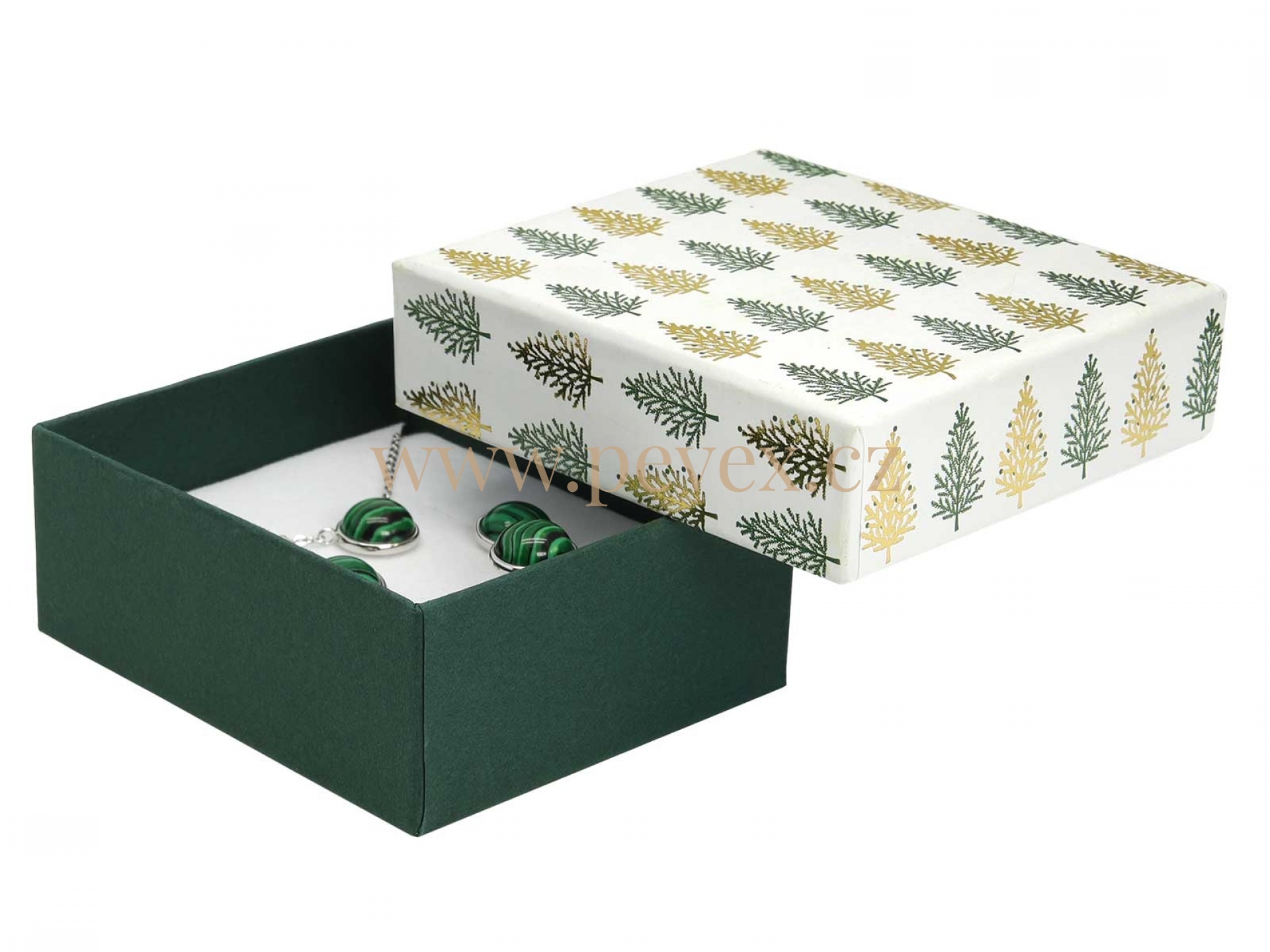 Vánoční papírová krabička s molitanovou vložkou pro menší sadu šperků.