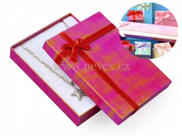 Papírová krabička s molitanovou vložkou pro větší soupravu šperků. Mix barev.