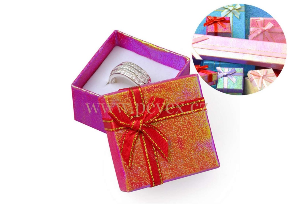 Papírová krabička s mašlí. Molitanová vložka pro prsten nebo náušnice. Mix barev.