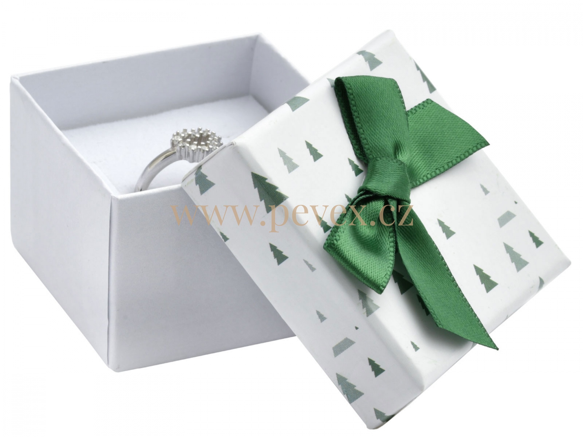 Papírová krabička s vánočním motivem. Molitanová vložka s průseky na prsten nebo náušnice.