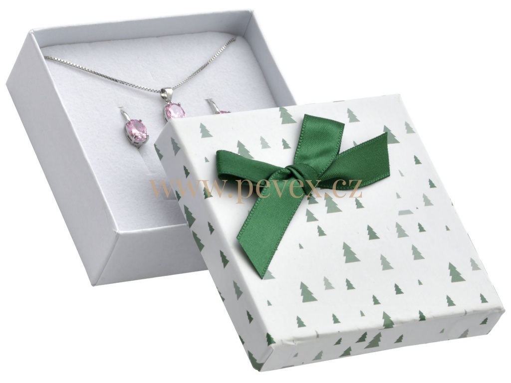 Papírová krabička na šperky s vánočním motivem. Molitanová vložka s průseky na sadu šperků.