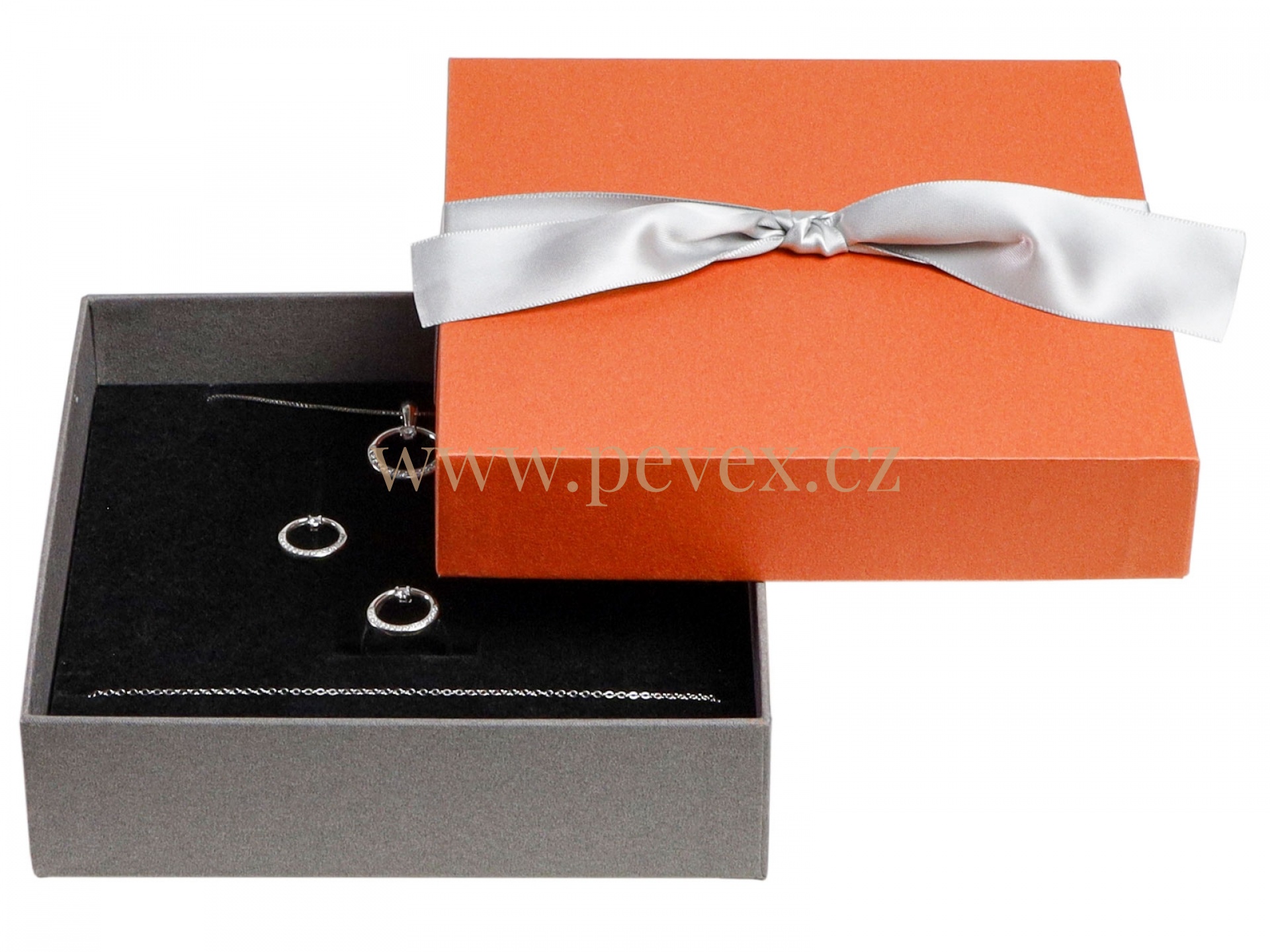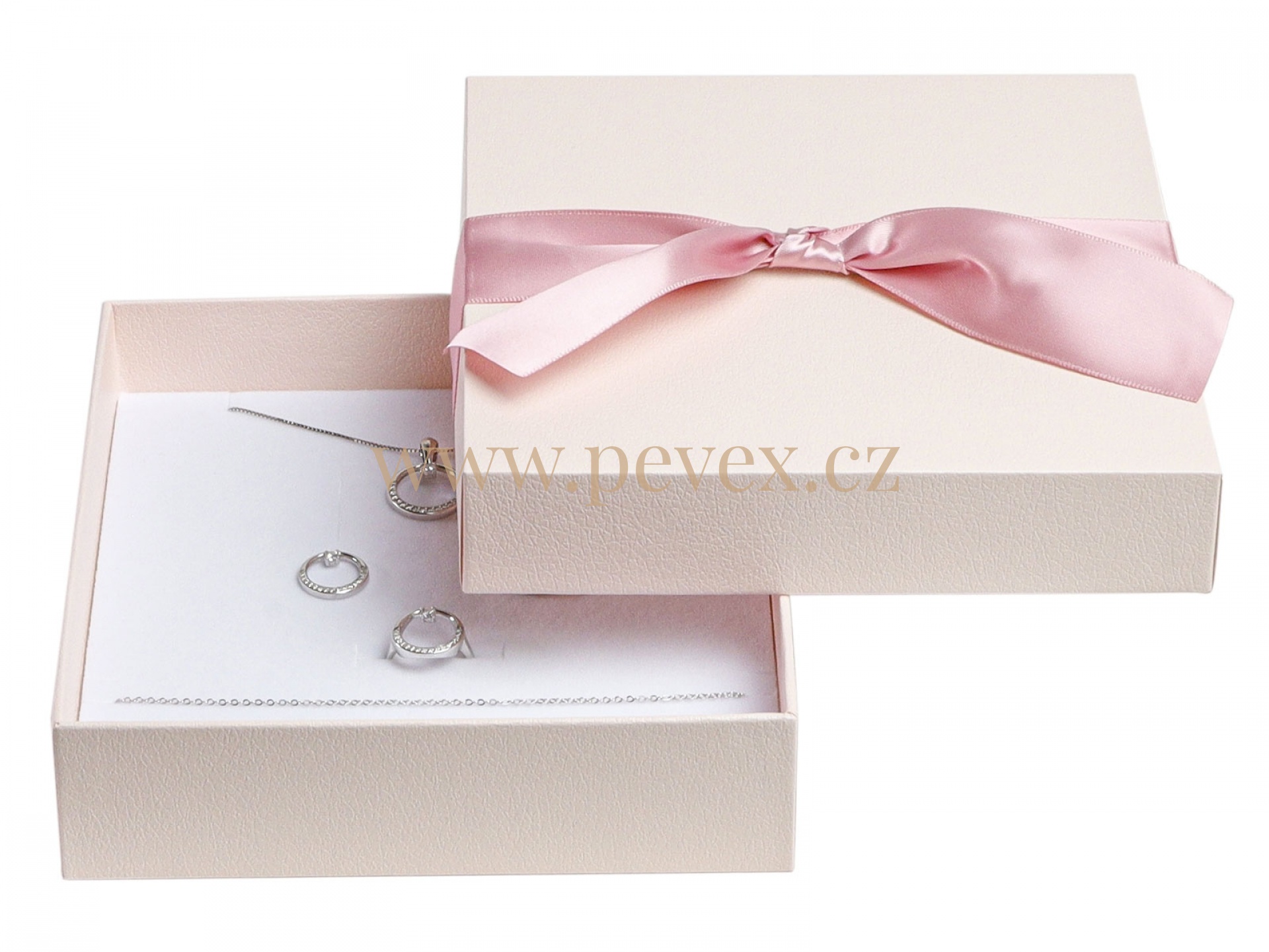 Papírová krabička na soupravu šperků se saténovou mašlí.