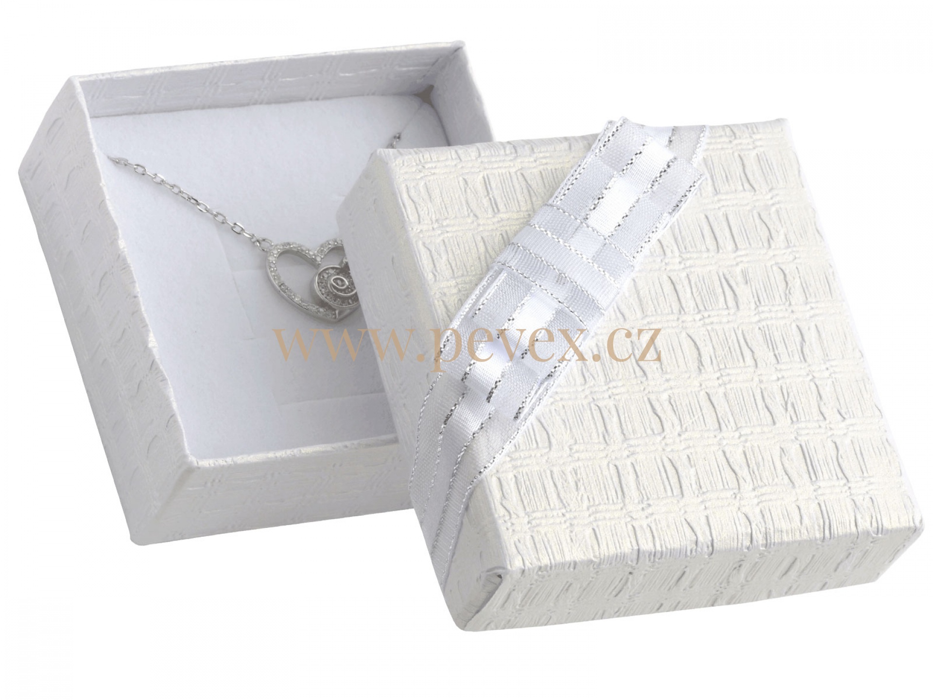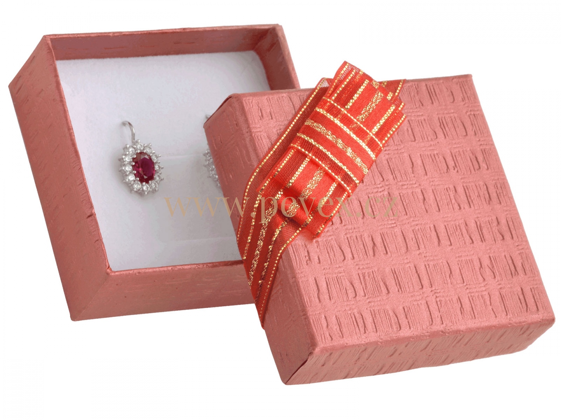 Papírová krabička s mašlí na víčku pro uložení náušnic.