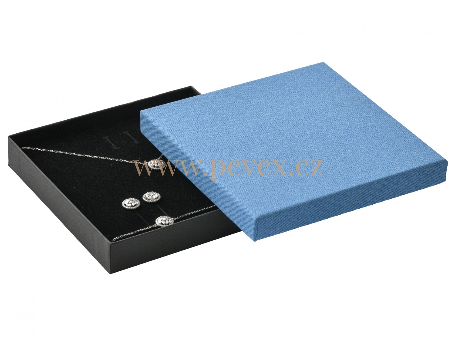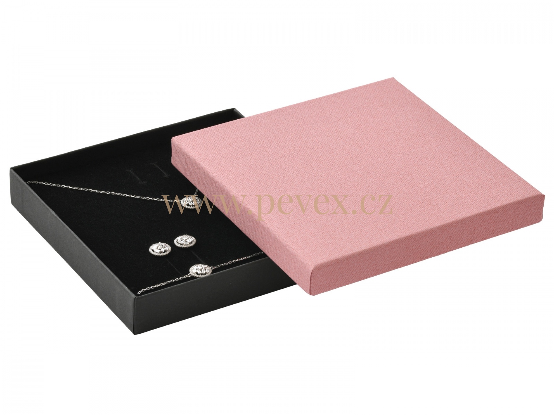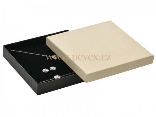 Papírová krabička s molitanovou vložkou. Průseky na soupravu šperků.