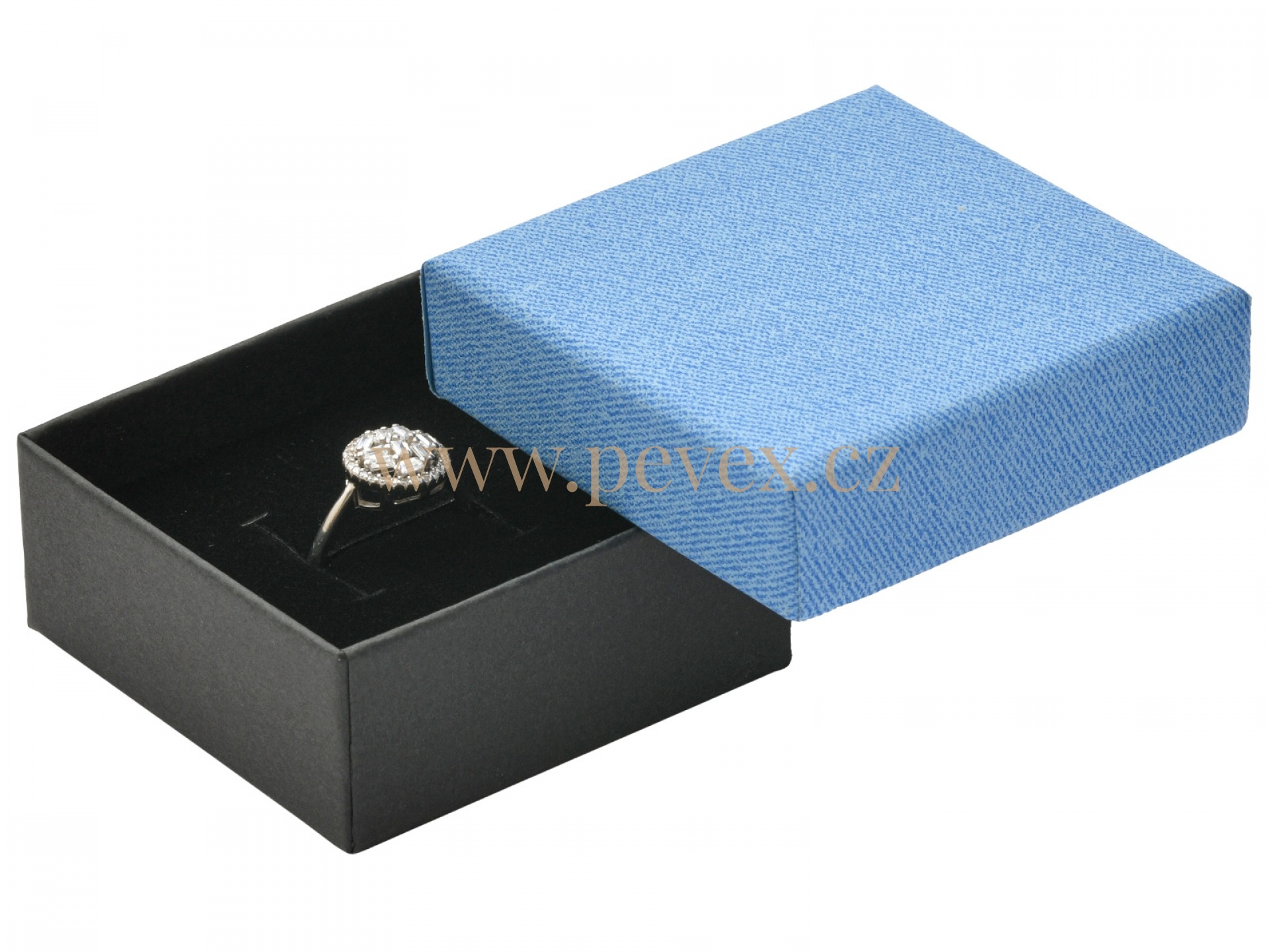 Papírová krabička na malou sadu šperků. Molitanová vložka s průseky na šperky.