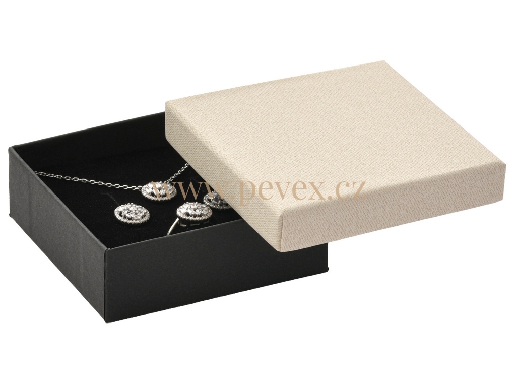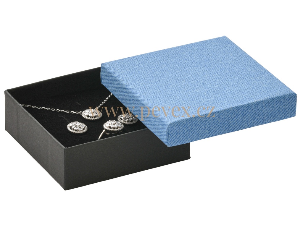 Papírová krabička na střední soupravu šperků. Molitanová vložka s průseky.
