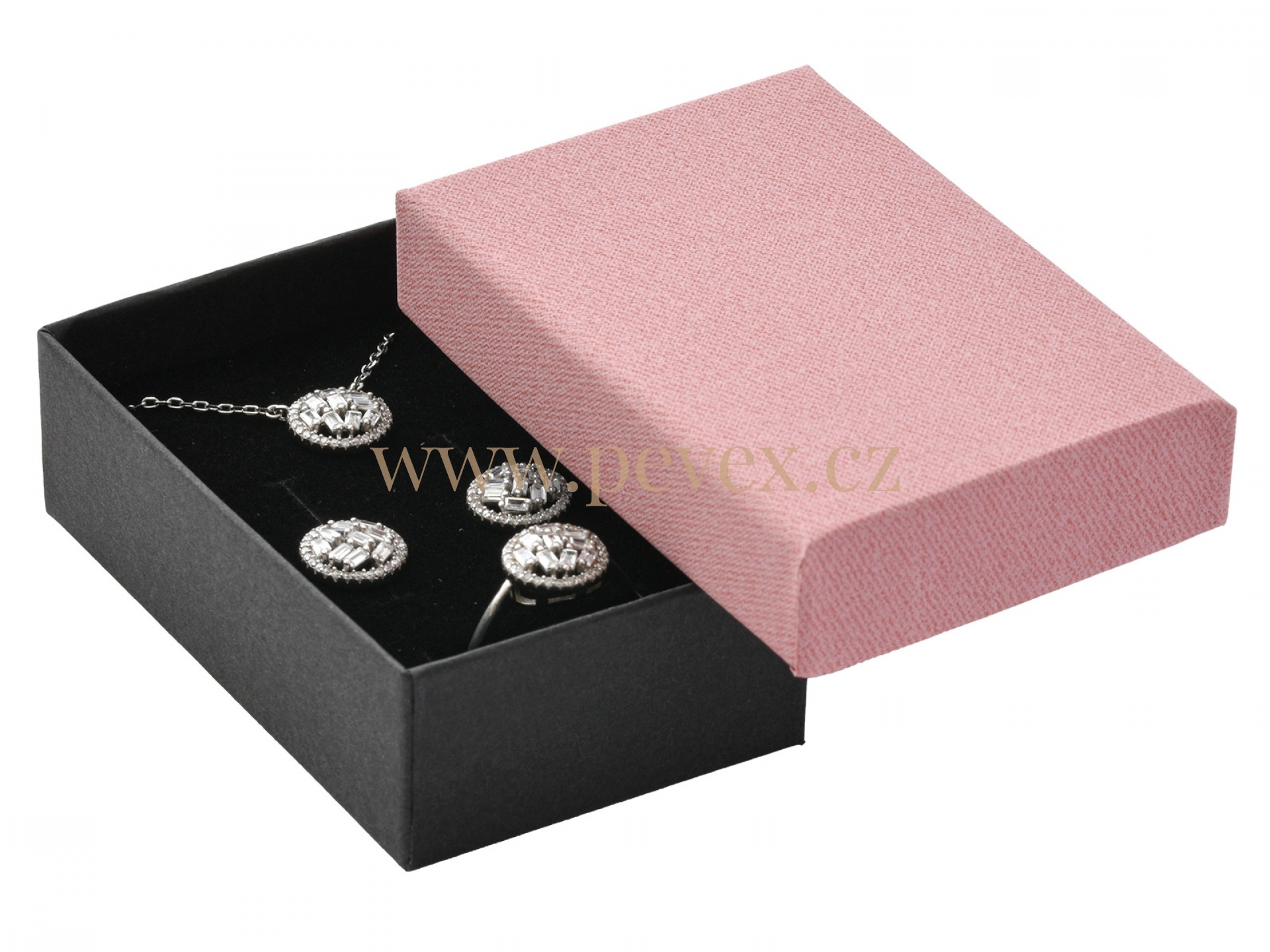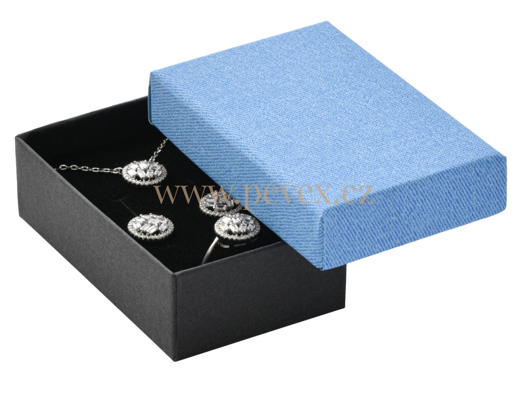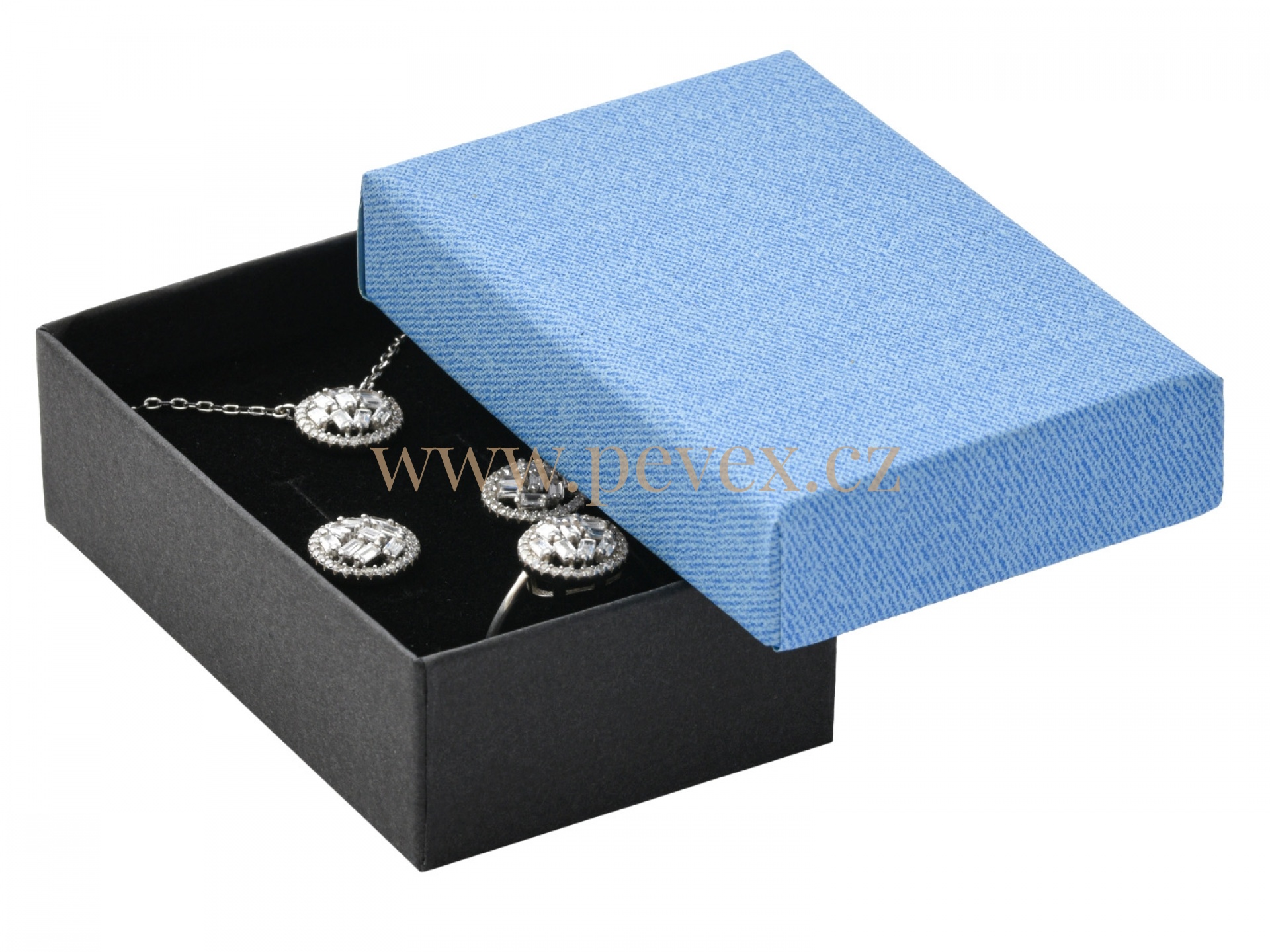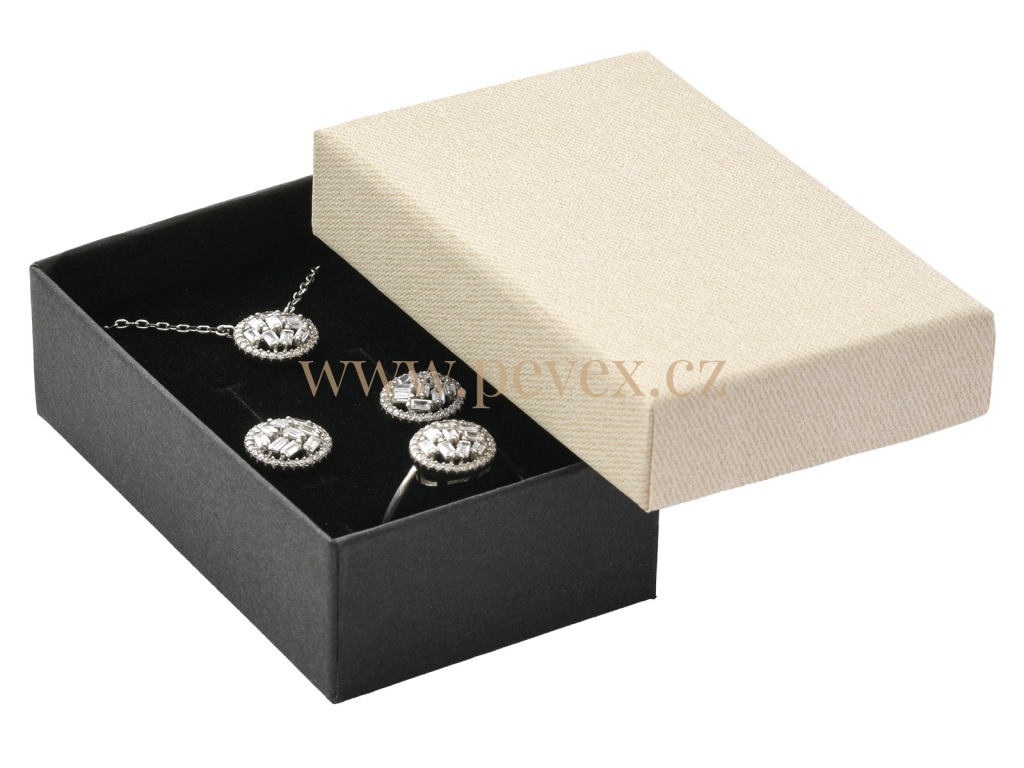 Papírová krabička na šperky s molitanovou vložkou. Průseky na malou sadu šperků.