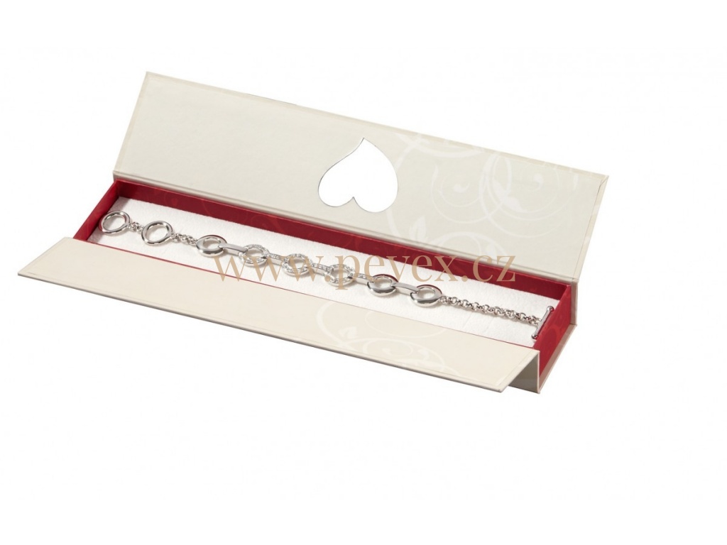 Kvalitní krabička s molitanovou vložkou pro náramek. Výsek srdce, na které se krabička zavírá. Výprodej posledních kusů.