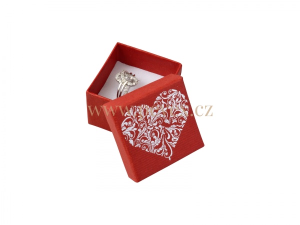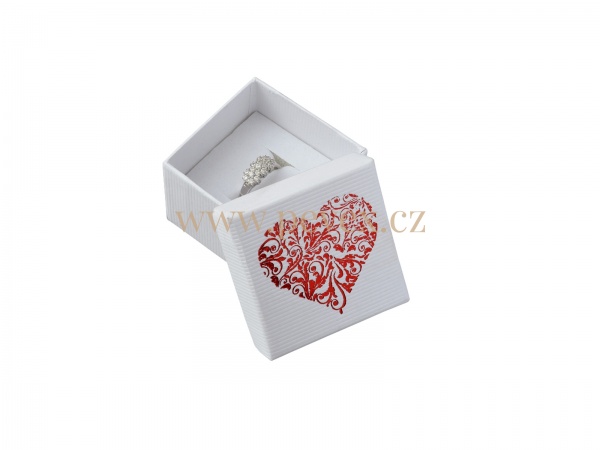 Papírová krabička s ražbou srdce na šperky Valentýn, molitanová vložka pro prsten nebo náušnice.