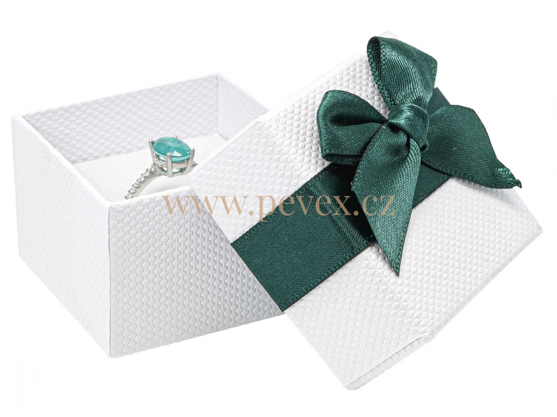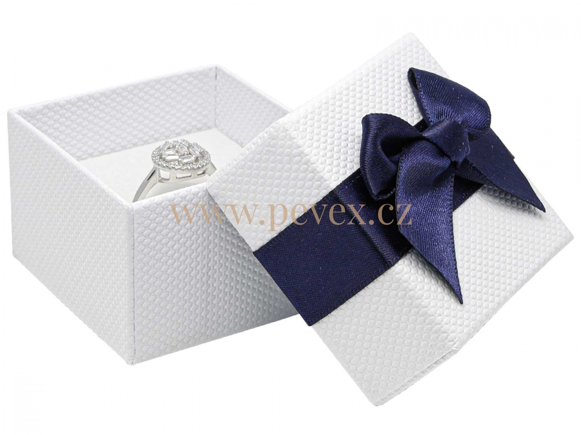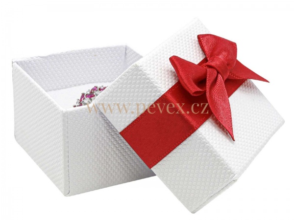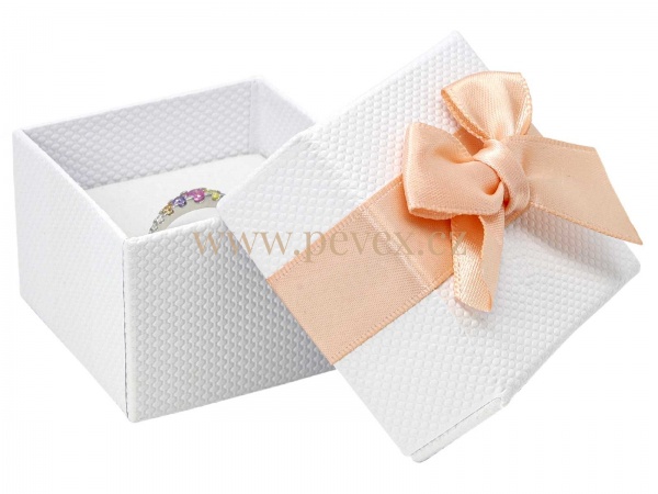 Papírová krabička na šperky s mašlí. Molitanová vložka s průseky na prsten nebo náušnice.