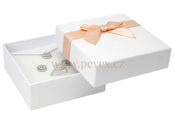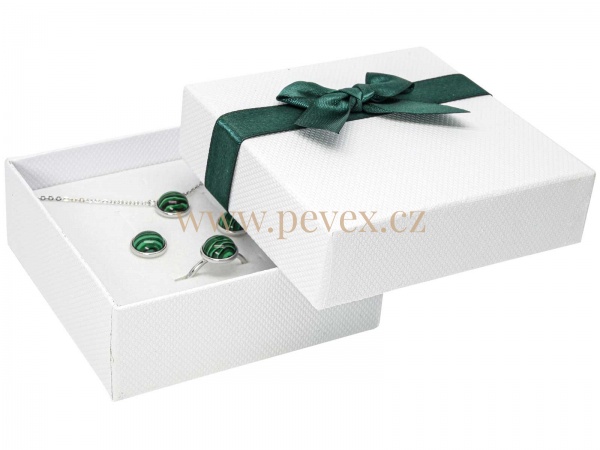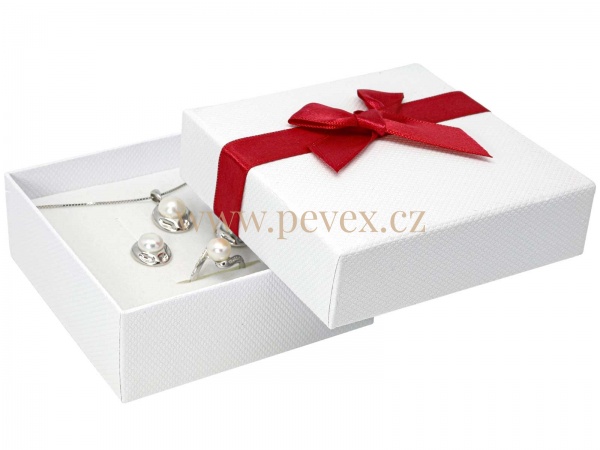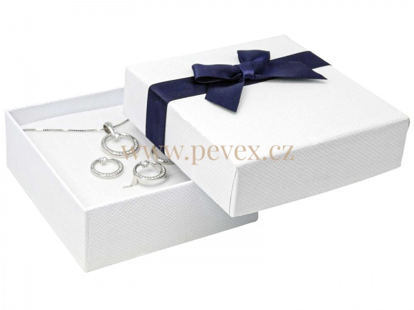 Papírová krabička s mašlí a molitanovou vložkou na střední sadu šperků.