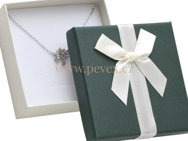 Papírová krabička s mašlí a molitanovou vložkou s průseky na sadu šperků.