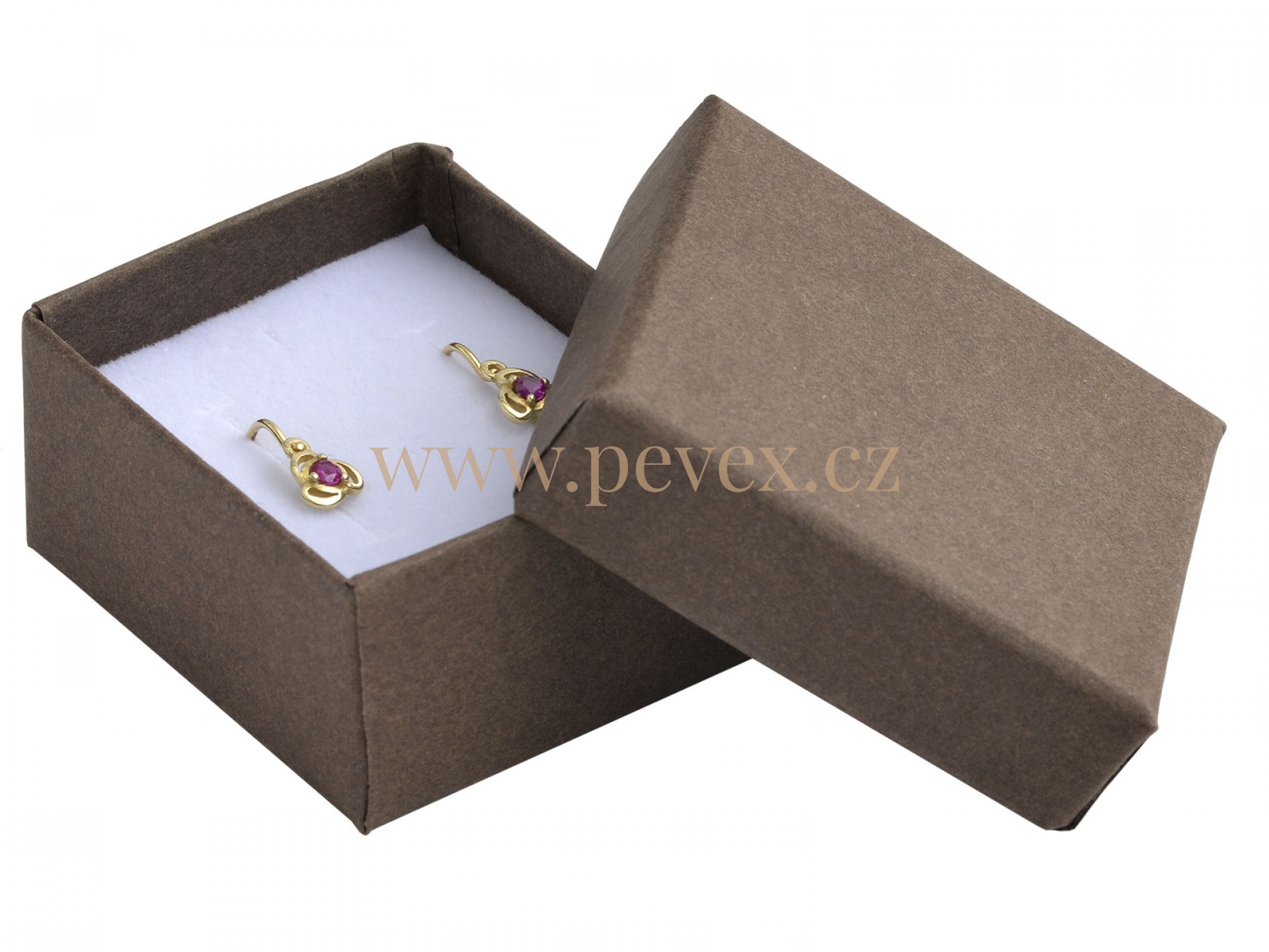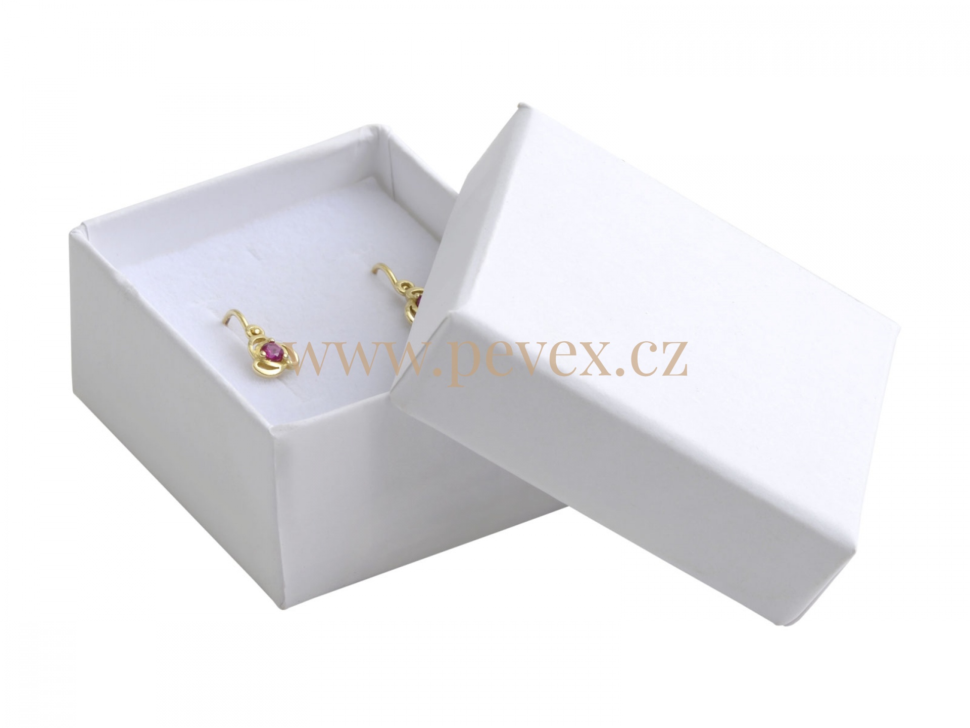 Papírová krabička s molitanovou vložkou pro náušnice.