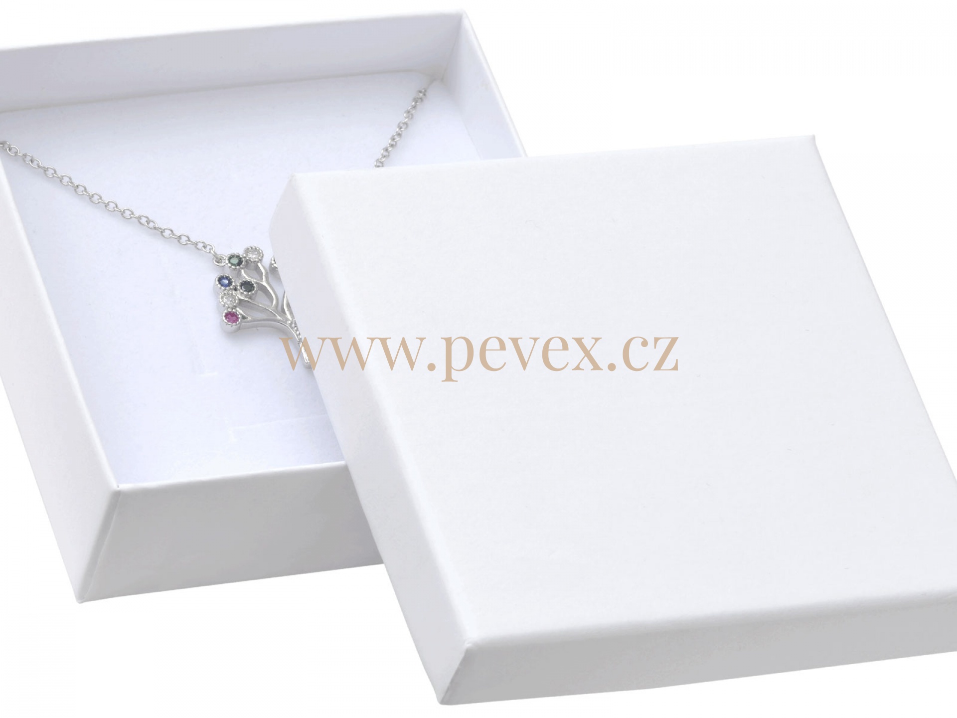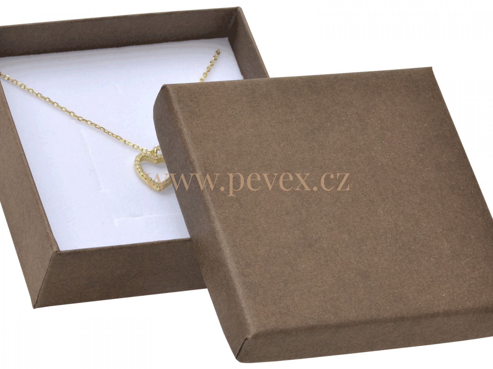 Papírová krabička pro střední sadu šperků nebo náramek.