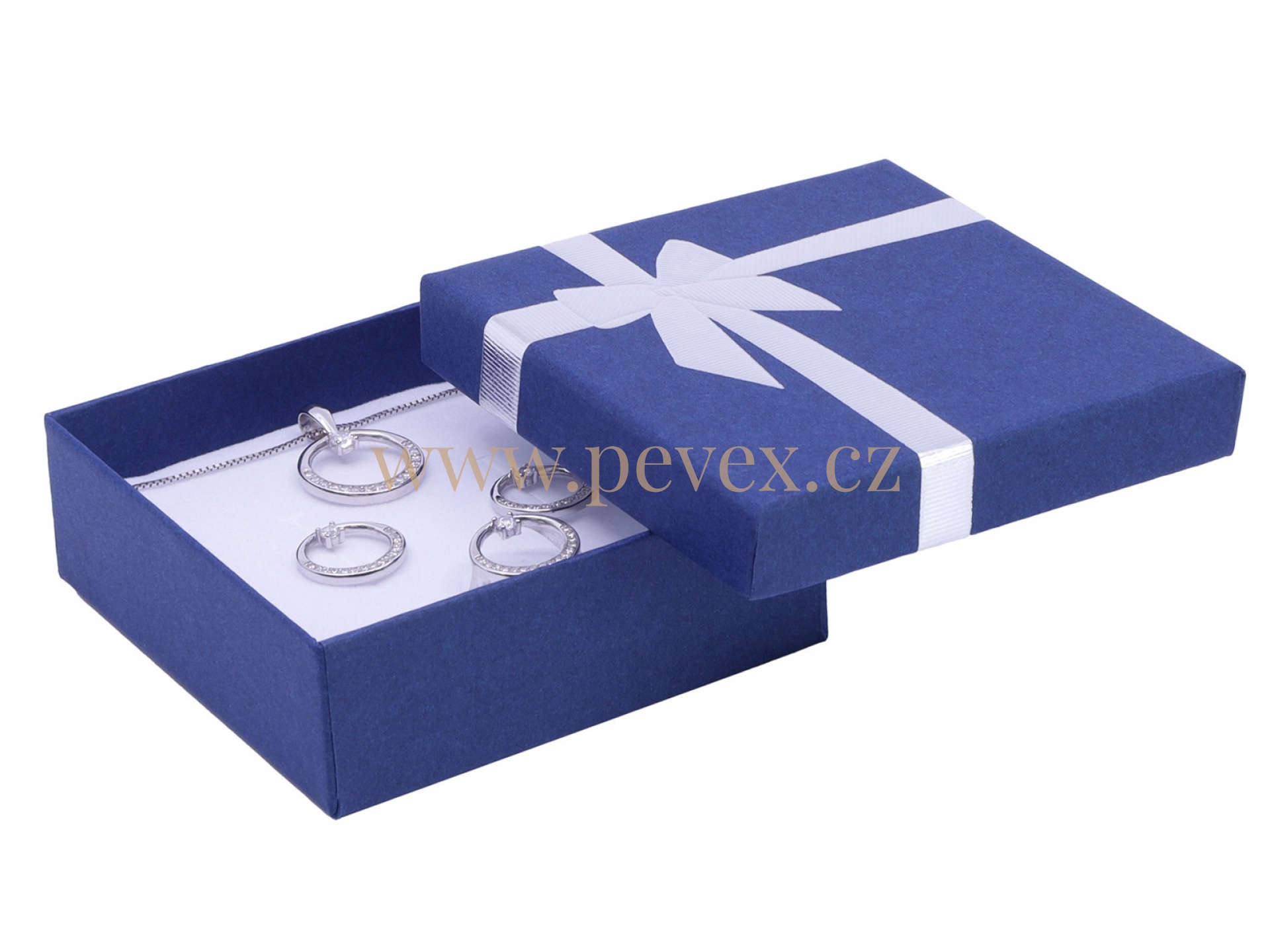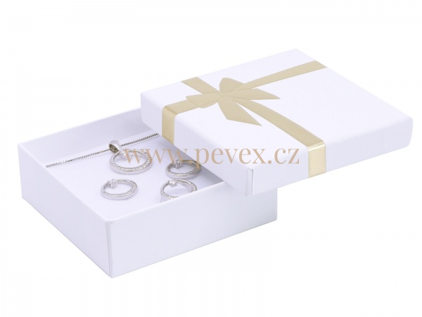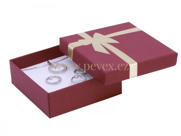 Papírová krabička s mašlí na malou sadu šperků. Molitanová vložka s průseky na šperky.