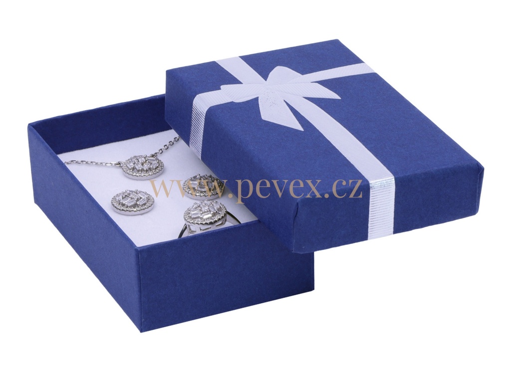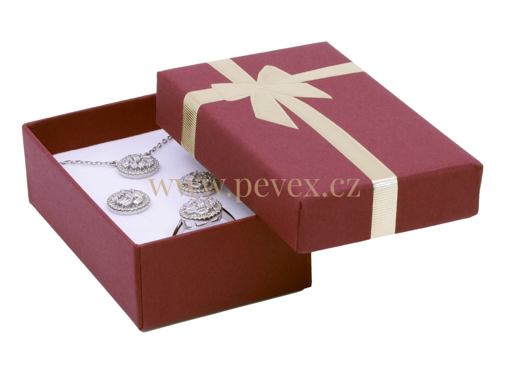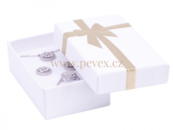 Papírová krabička s mašlí na sadu šperků. Molitanová vložka s průseky na šperky.