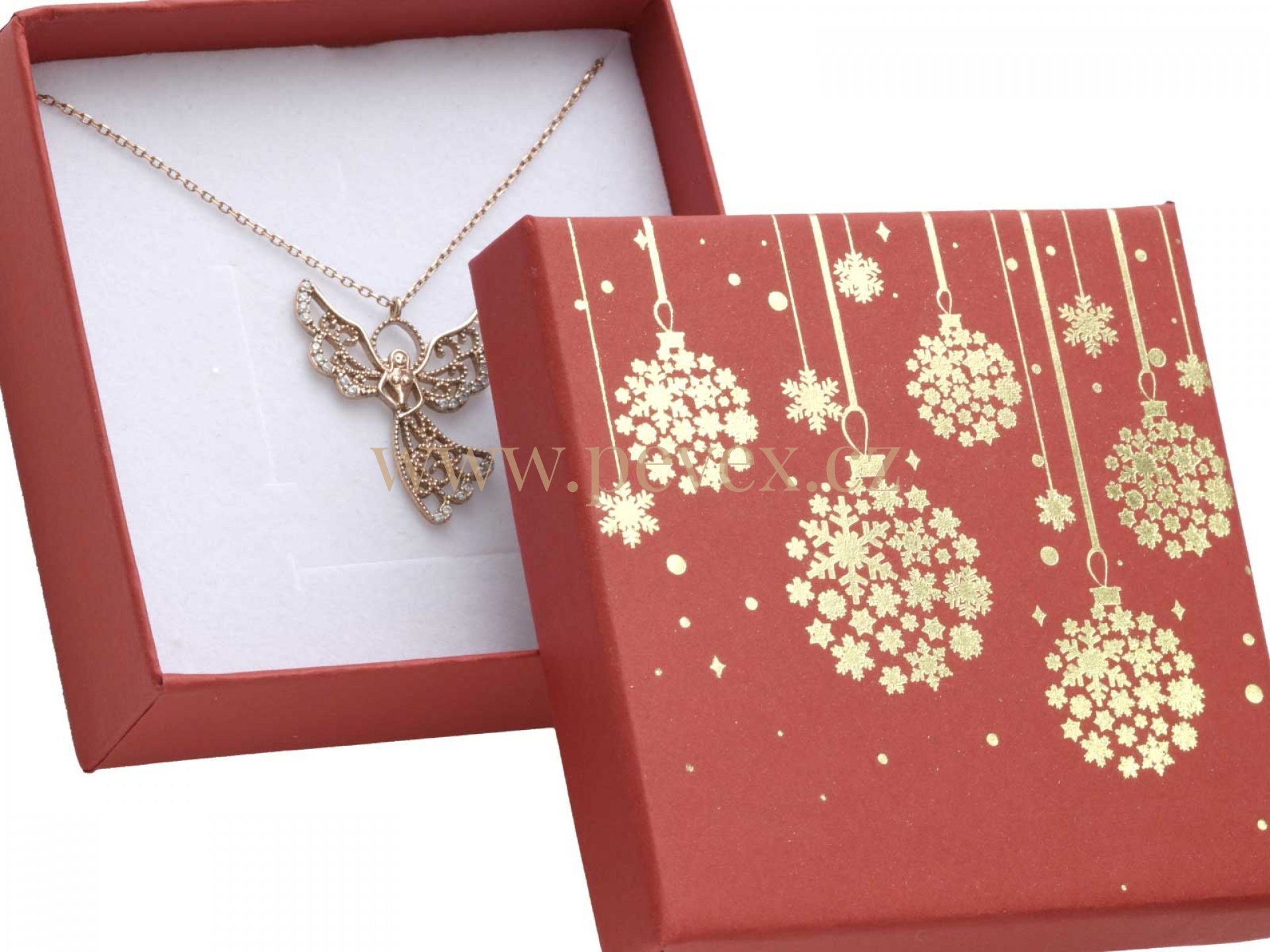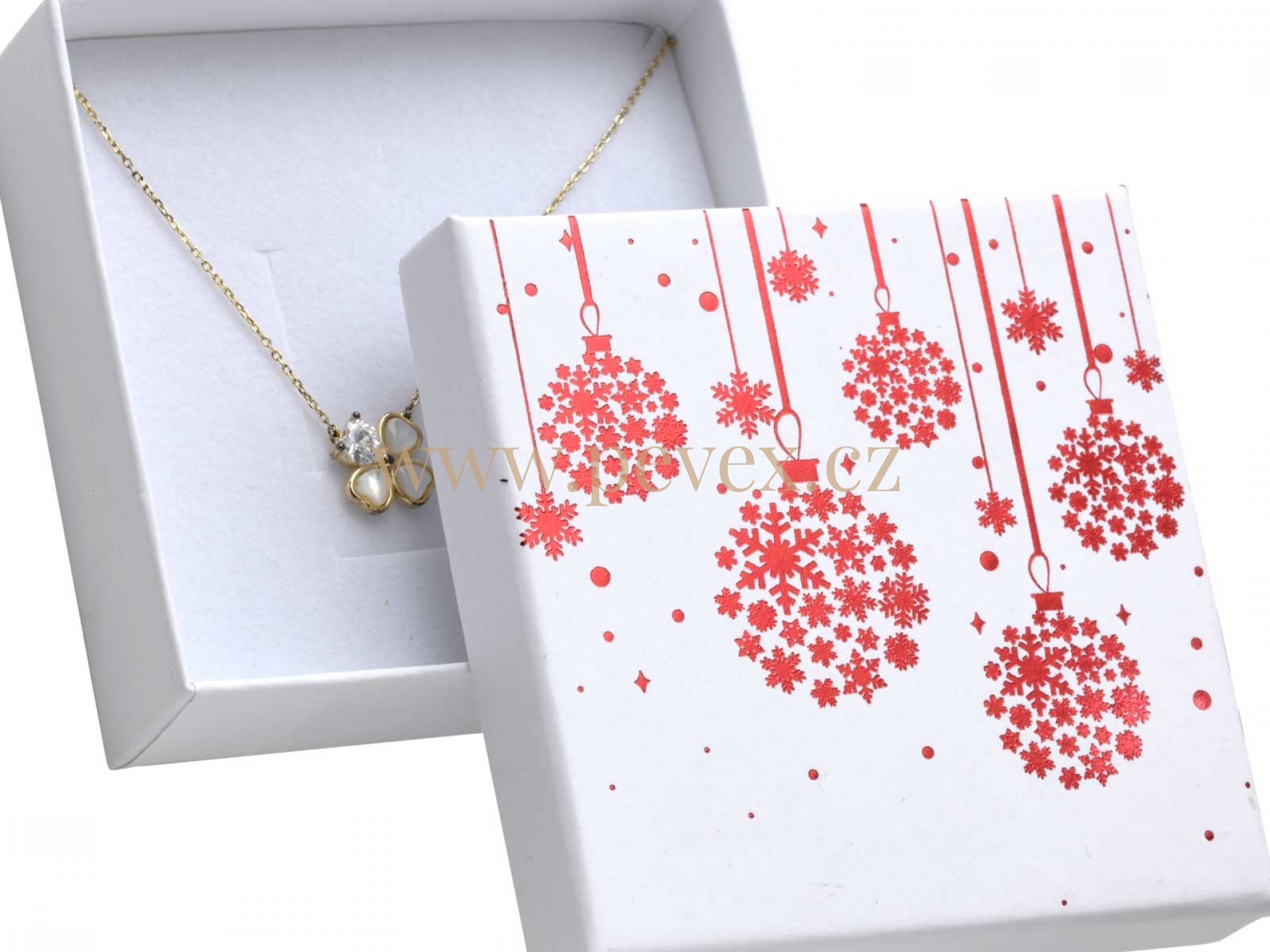 Papírová vánoční krabička s molitanovou vložkou pro malou sadu šperků.
