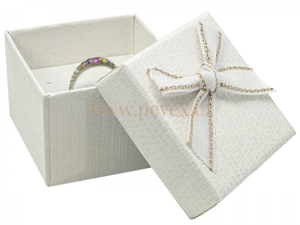 Papírová krabička na šperky s mašlí pro prsten nebo náušnice.