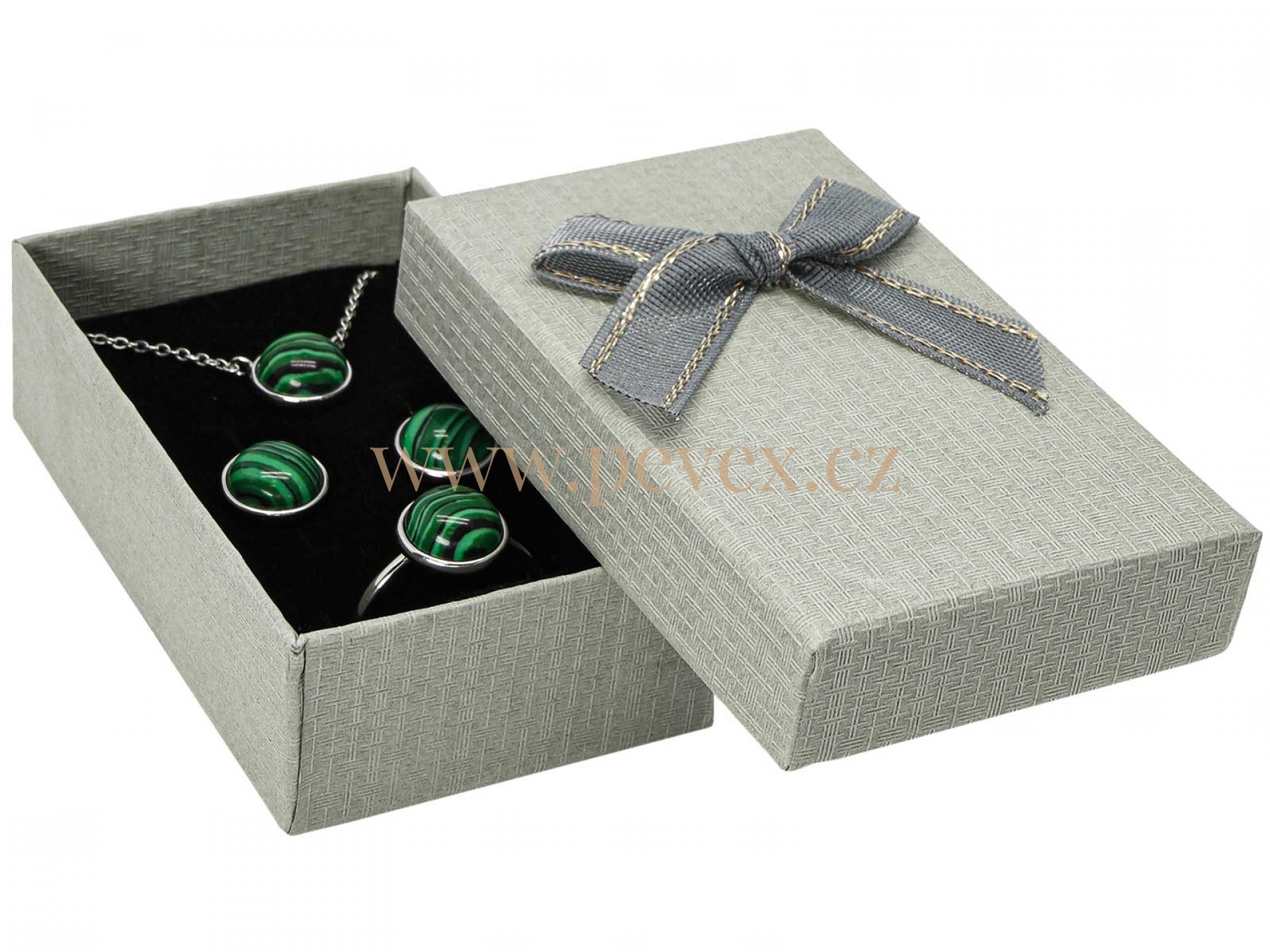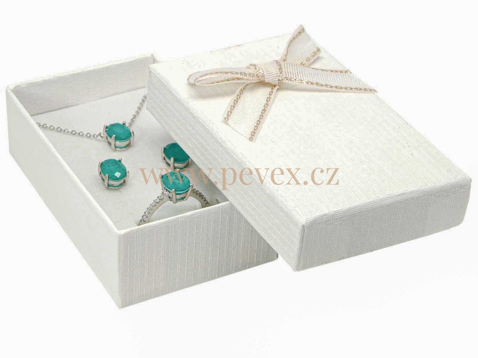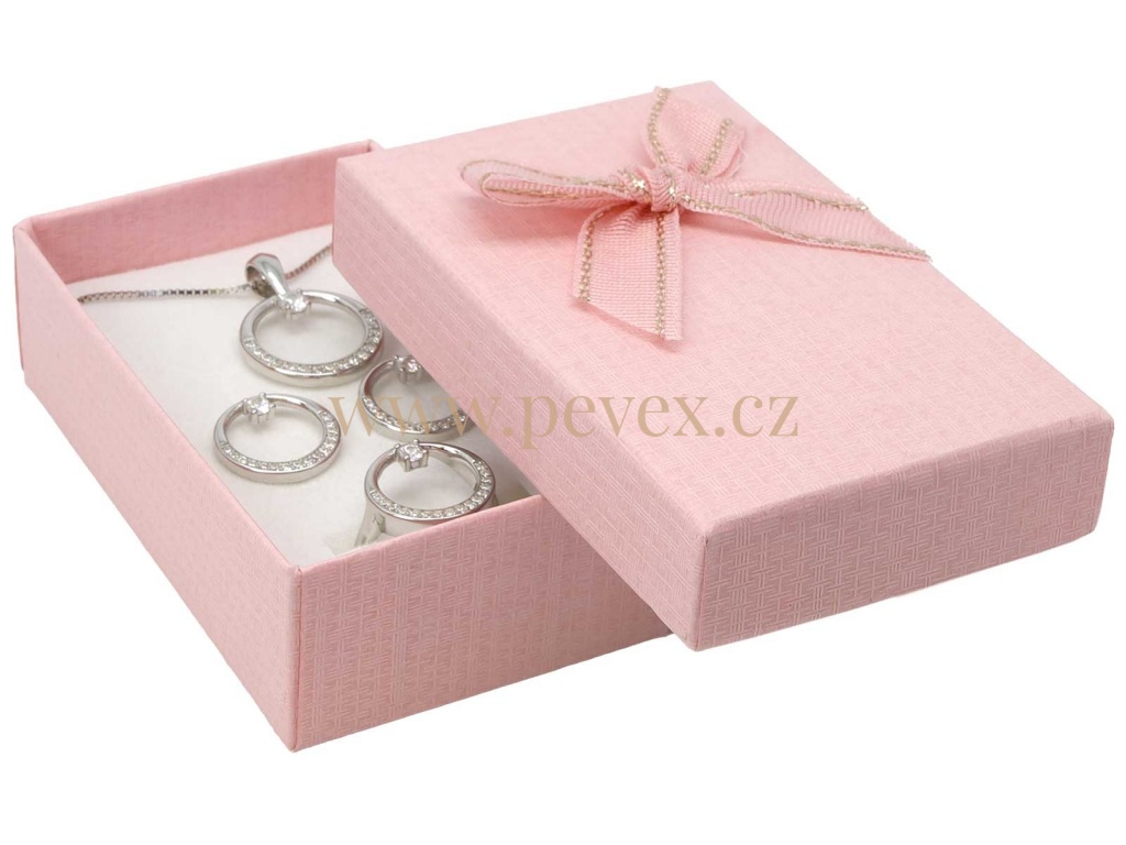 Papírová krabička s mašlí na malou sadu šperků.
